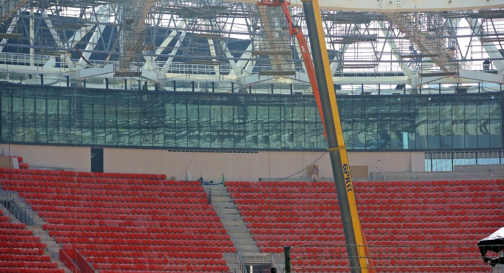 La pose des sièges a commencé il y a 2 semaines et la couverture des tribunes débutera dans 2-3 semaines.
