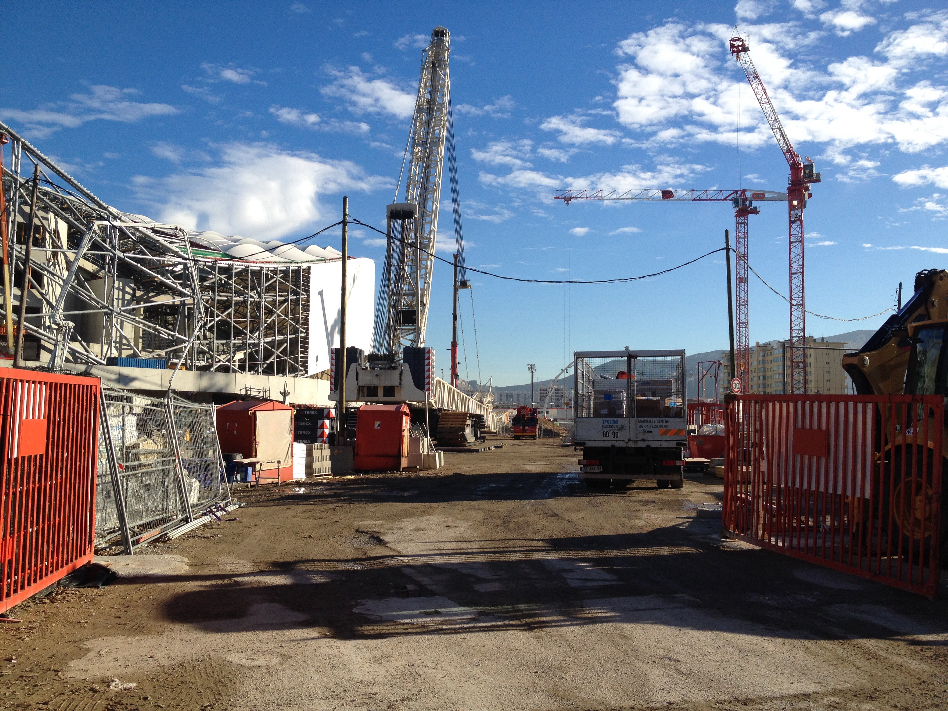On peut raisonnablement penser que le stade sera entièrement couvert d'ici à mercredi et totalement terminé au niveau des lés de jupes d'ici la fin de semaine. Donc là prochaine manifestation au Vel (début juin c'est cela ...
