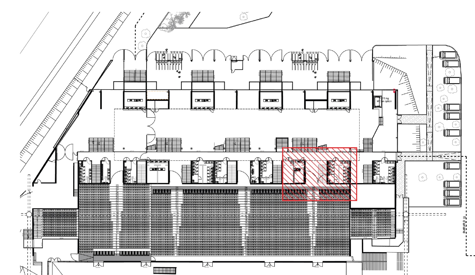 Vous trouverez ci-dessous l'implantation des places PMR en Trannin en haut de niveau 0 sauf parcage visiteurs (bas de niveau 0).