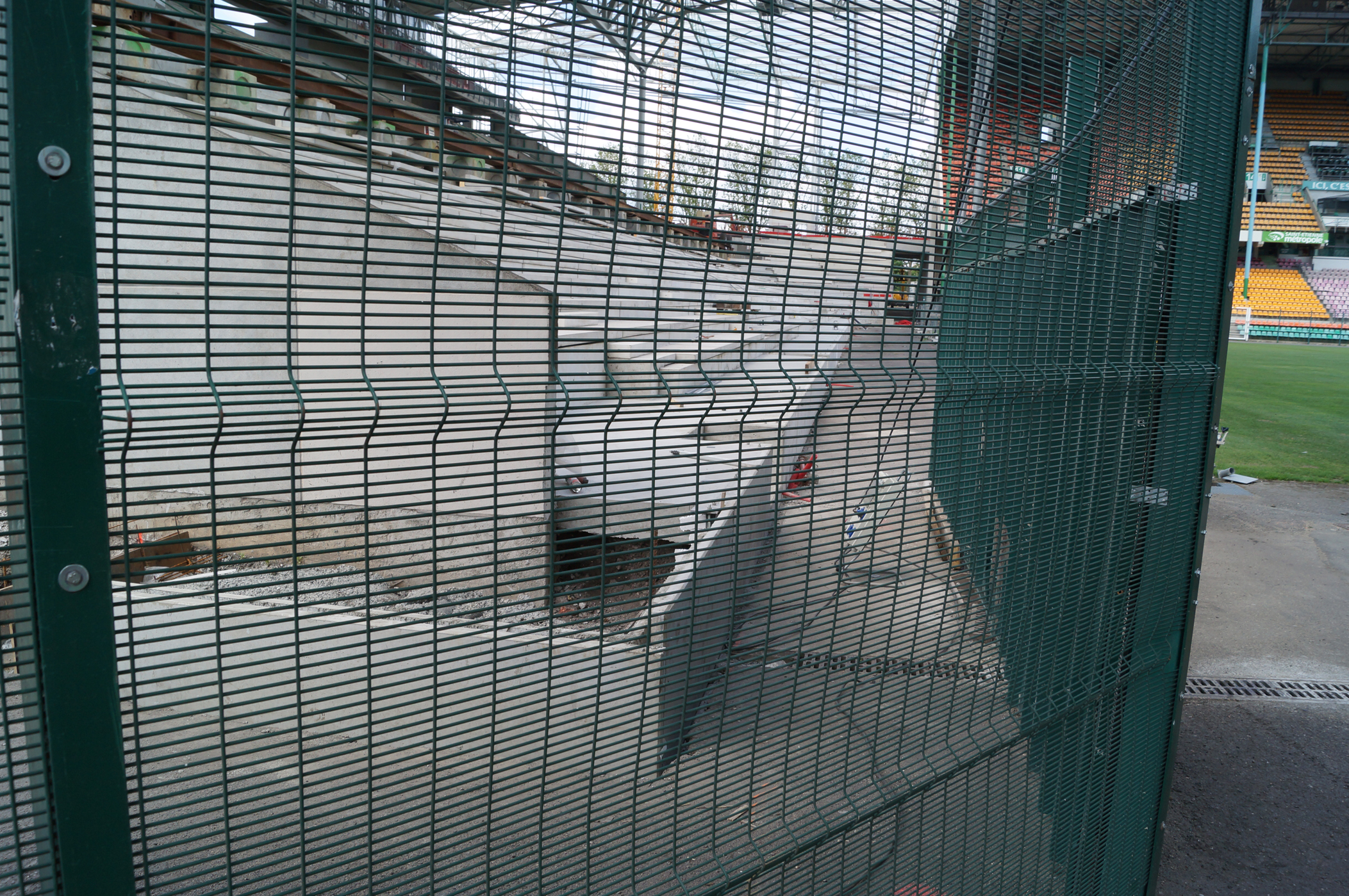 Sinon juste une remarque sur le 3è angle, on imagine un deuxième étage; mais ça semble peut réalisable, ou alors à minima, car il y les poteaux inclinés de la future poutre Faurand qui fermeraient la vision des spectateurs, cette fois, le poteau il faudra bien le laisser . Sur l'angle opposé à Faurand, le problème est réglé avec le loges qui sont hautes, et verticales, a l'applomb de la tribune basse, et donc sans recul.