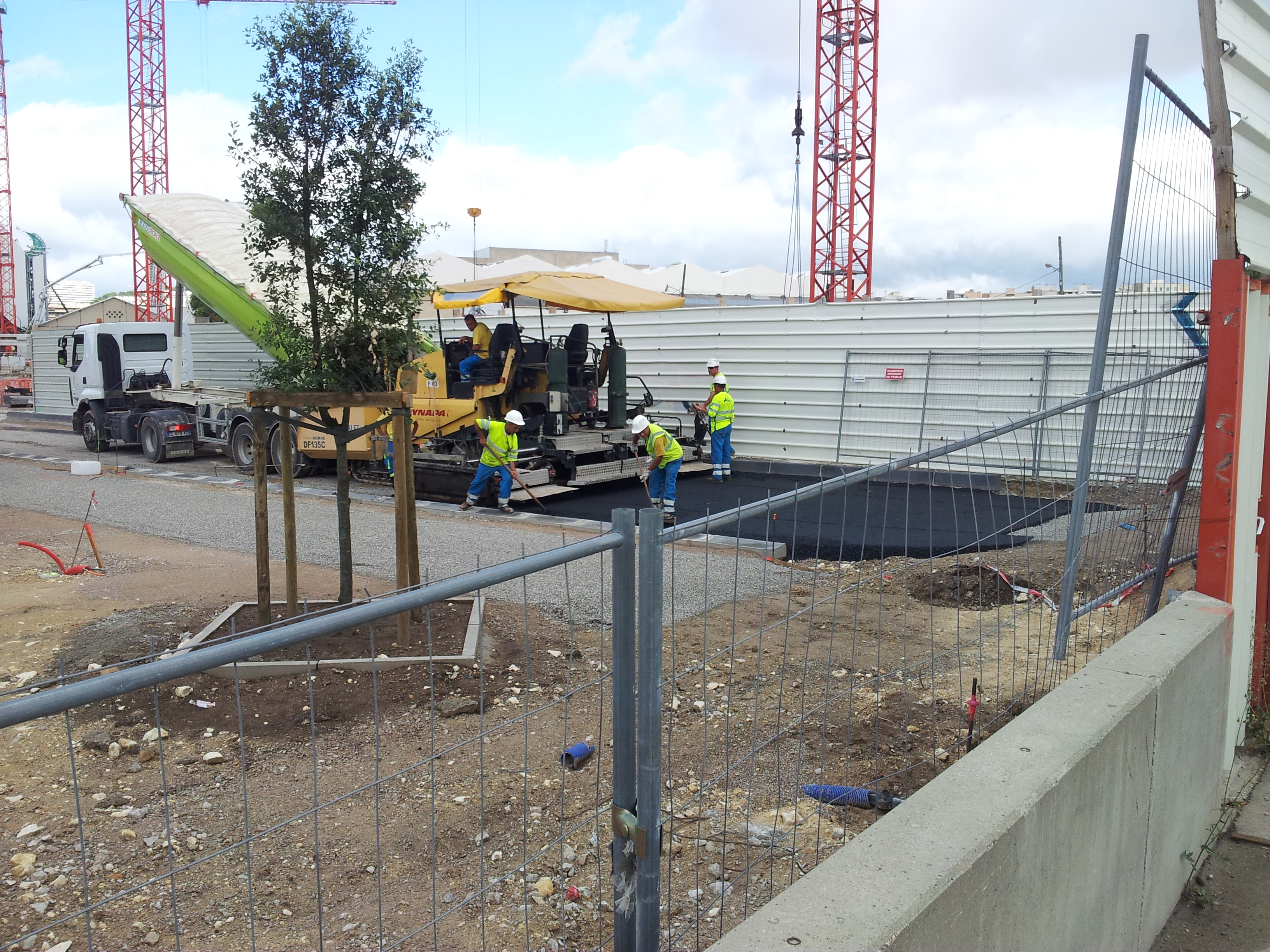 On y voit juste que le goudronnage des "routes" du parvis Ganay a commencé.