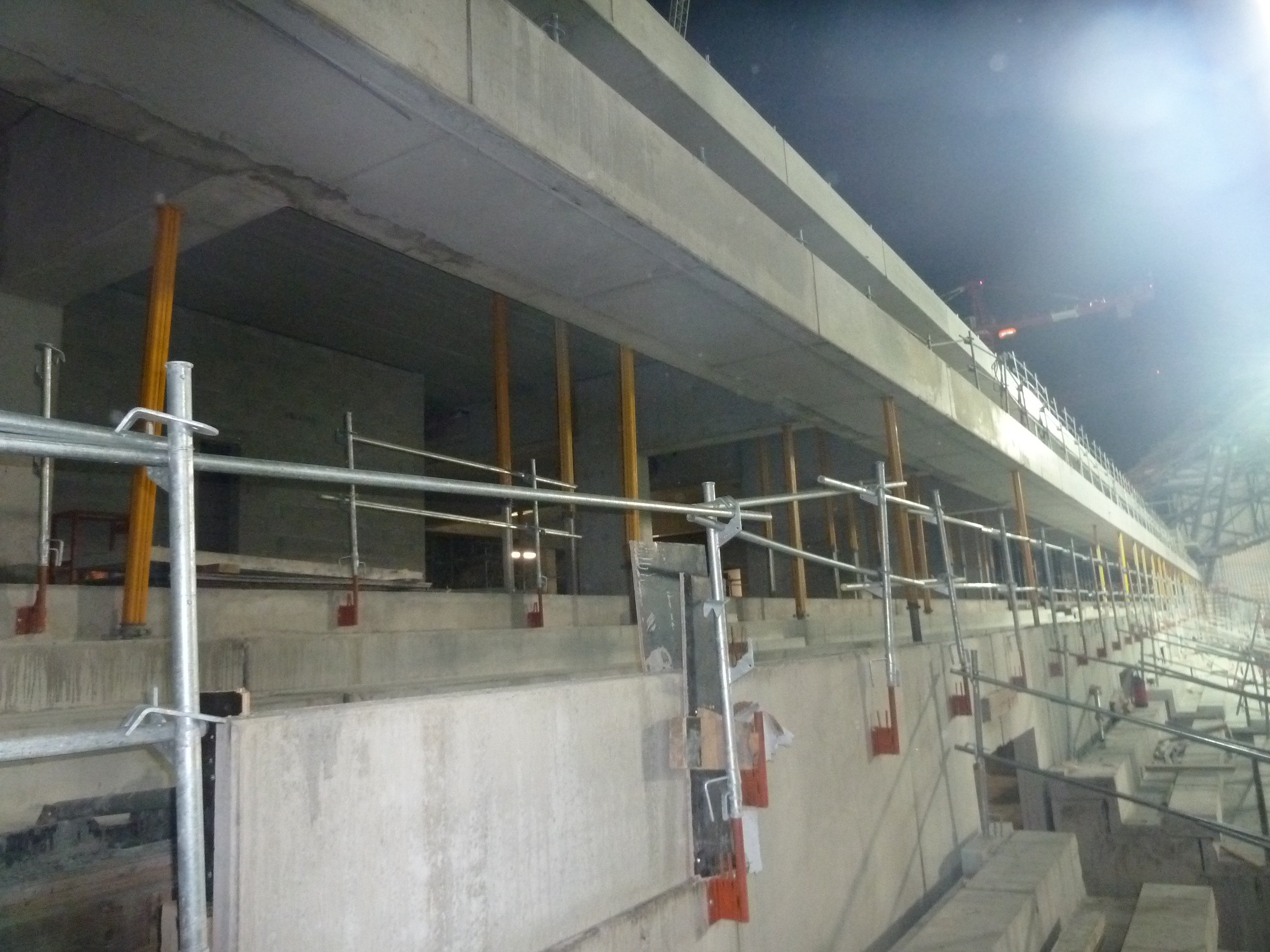 Je mets en ligne les photos du stade prises hier soir et ce matin. Cela bossait dur ce matin avec presque toutes les grues en action.