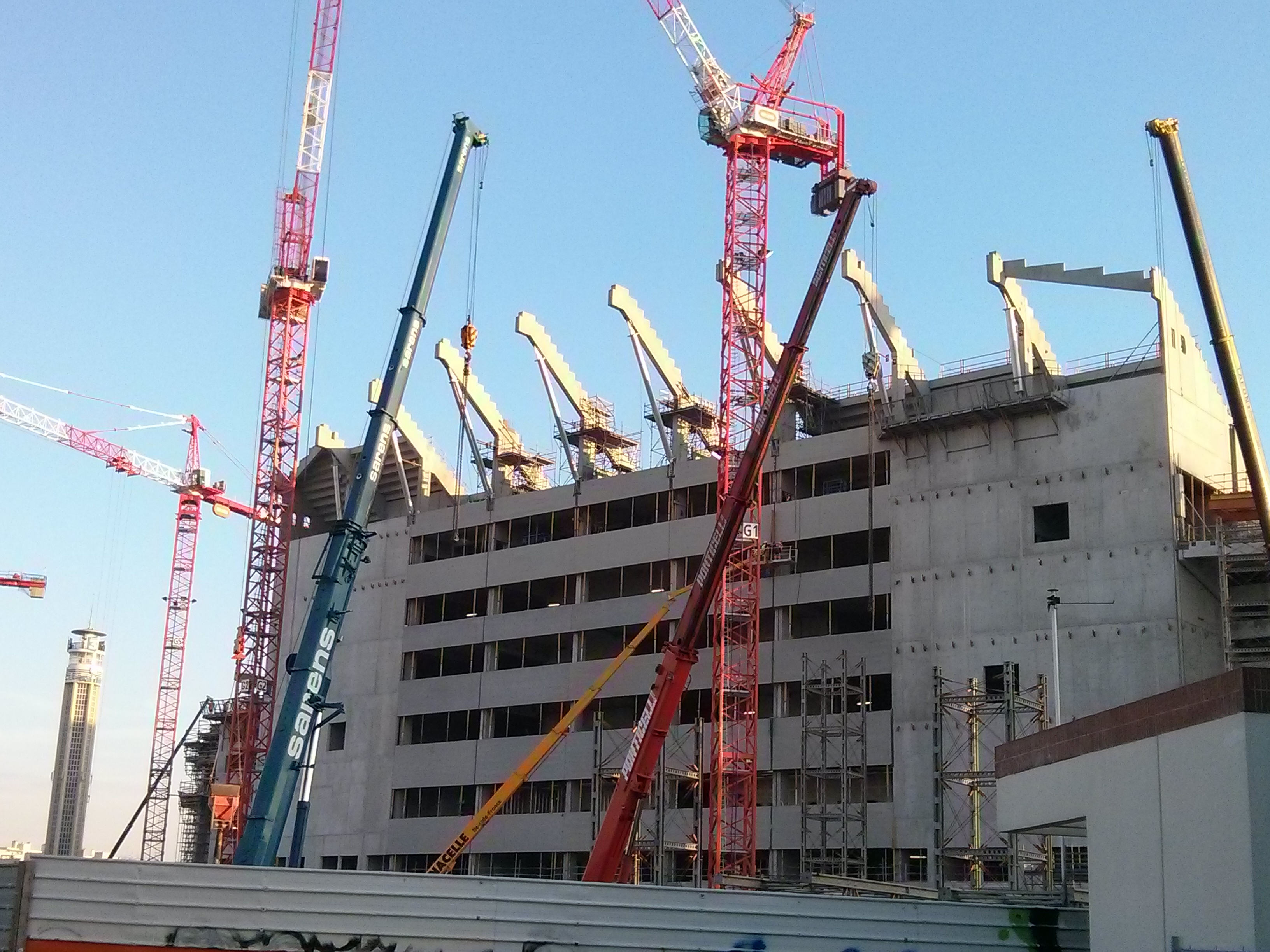 au vu de la dernière capture d'écran, les grues retirent les échafaudages au niveau des dernières crémaillères JB haute, donc je conclue que ça pourrait aller très vite après pour les gradins.