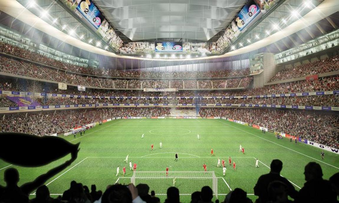 La bataille de Madrid est lancée. Alors que le stade Santiago Bernabeu va être modernisé à l’horizon 2016 afin de permettre au Real Madrid de se projeter de plein pied «dans le 21esiècle», le président du Real Madrid a confirmé, à la mi-octobre, son intention de financer la rénovation estimée à 400 M€ (augmentation de la capacité de 85.000 à 90.000 places, développement des loges et des sièges à prestation et design ultramodernes) de la légendaire enceinte madrilène par un contrat de naming. «On a décidé de concrétiser le projet. Il y a quatre candidats et s'ils se dépêchent on pourra peut-être envisager de commencer, dès cet été, à travailler sur ce qui sera quelque chose d'emblématique pour le Bernabeu du XXIe siècle. Au mieux, un nom sera ajouté à celui de Bernabeu, si l'on parvient à en trouver un», a indiqué Florentino Perez en précisant que quatre projets architecturaux étaient en lice.