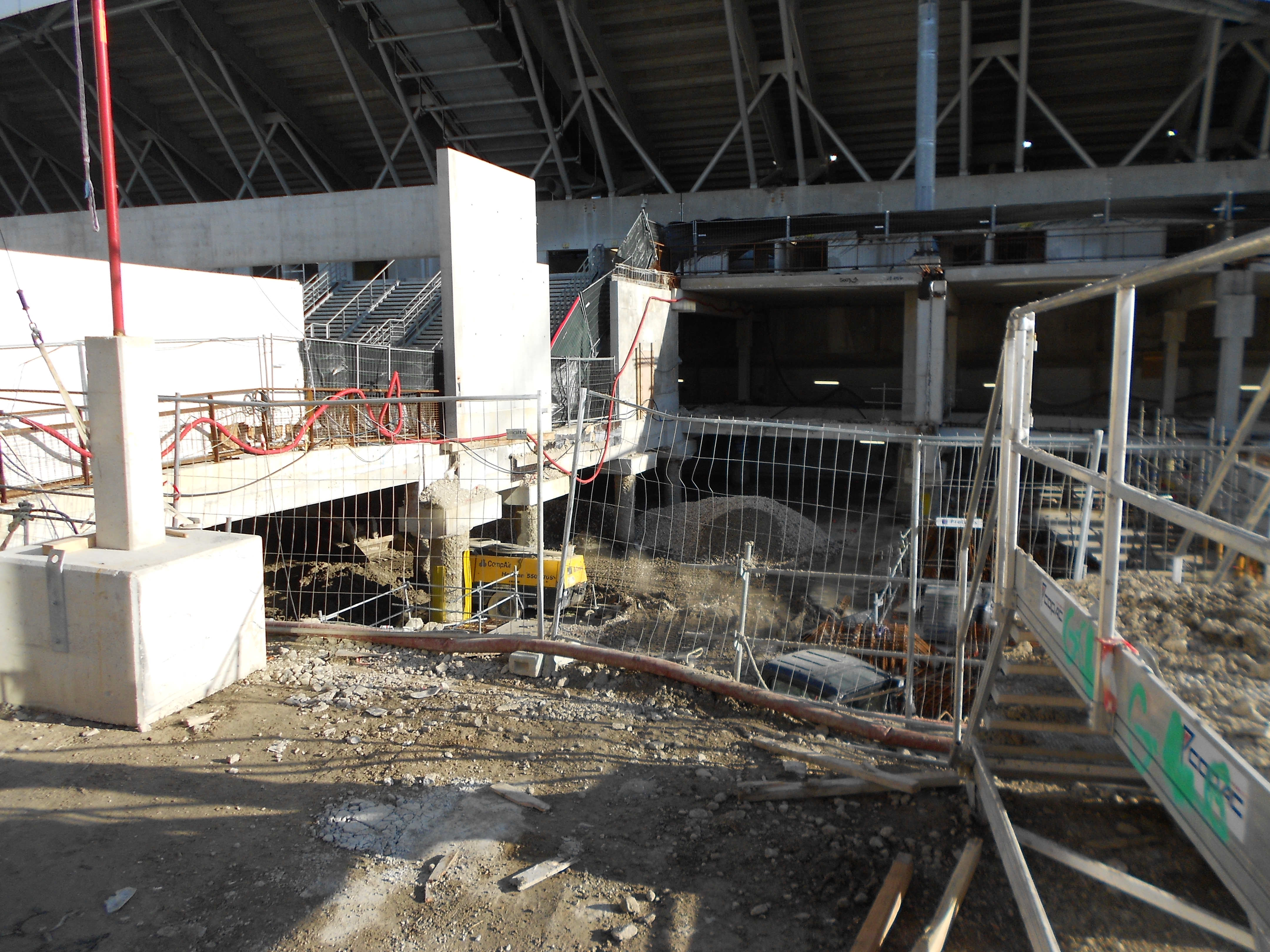 Toute la matinée de hier on a vu une pompe déversé du béton au niveau -1 du virage nord, c'est a dire coulé la dernière partie de dalle. Hors sur cette photo on voit que le béton a disparue !