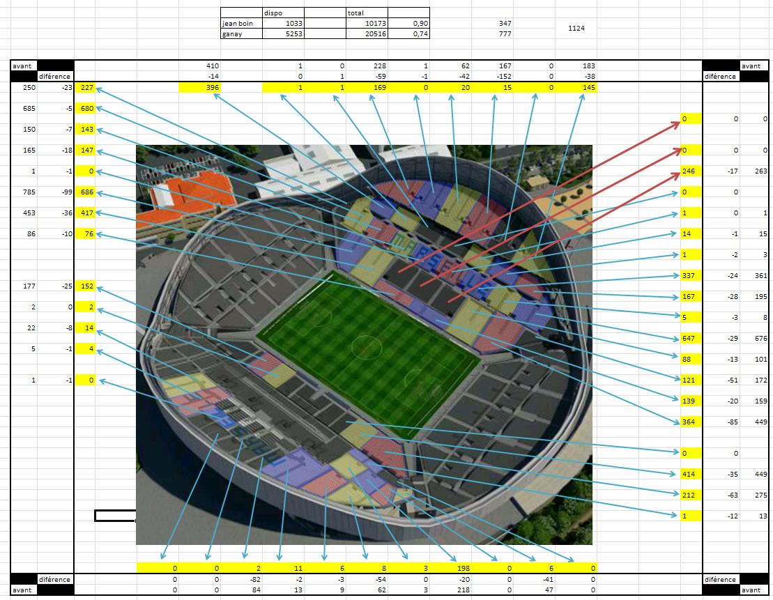 Concernant le taux de remplissage de ganay il est cohérent car les deux bloc non mis en vente corresponde au place VIP (là par contre j'ai pas d'info évidement)