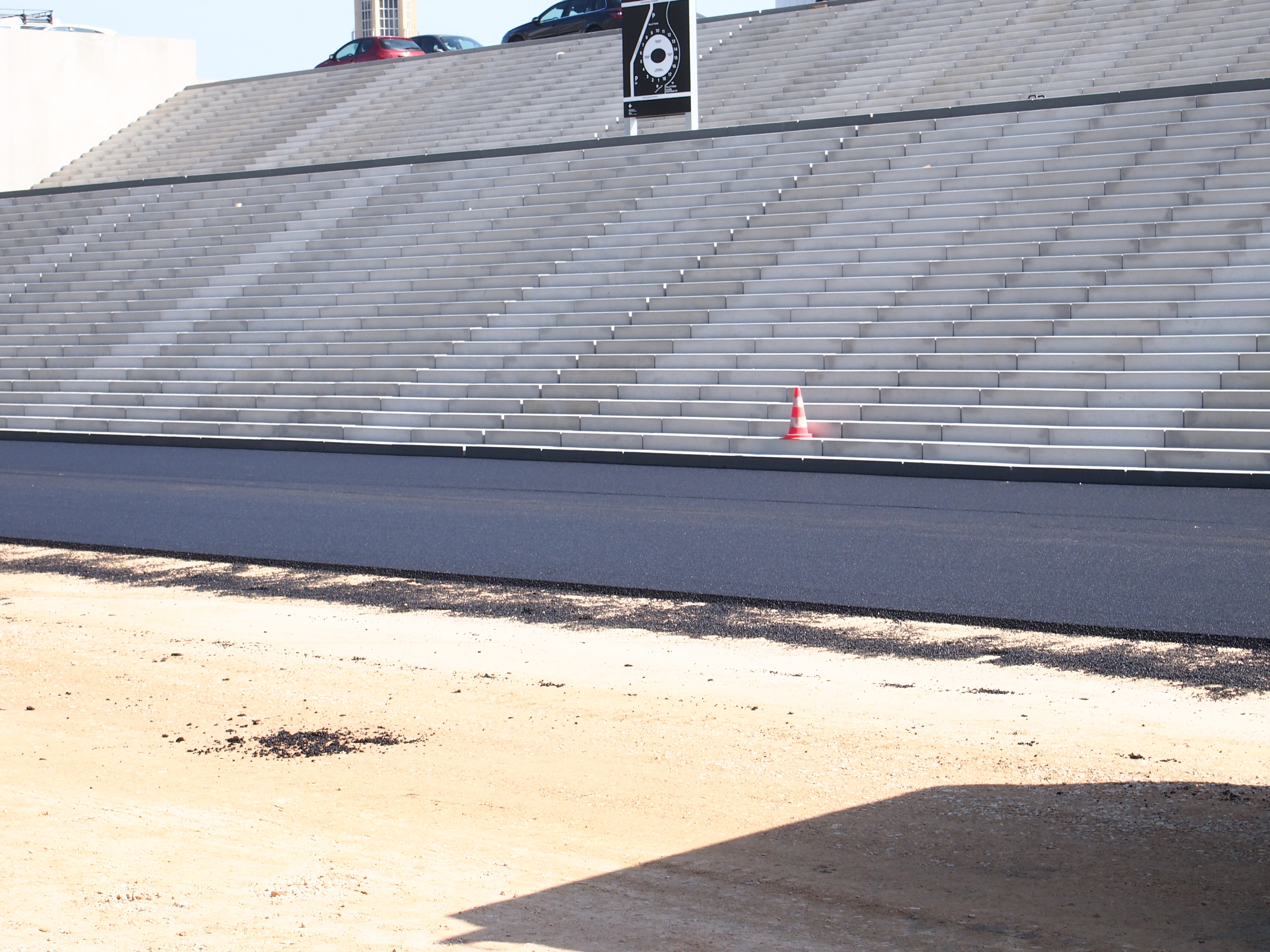 Je pense tout simplement qu'il s'agit de la signalisation d'accès (N° de porte, tribune etc…). Rien à voir, à mon avis, avec de la décoration (je pense que le béton restera tel quel à cet endroit..)pompon a écrit :quelques petites observations....il faut zoomer !!