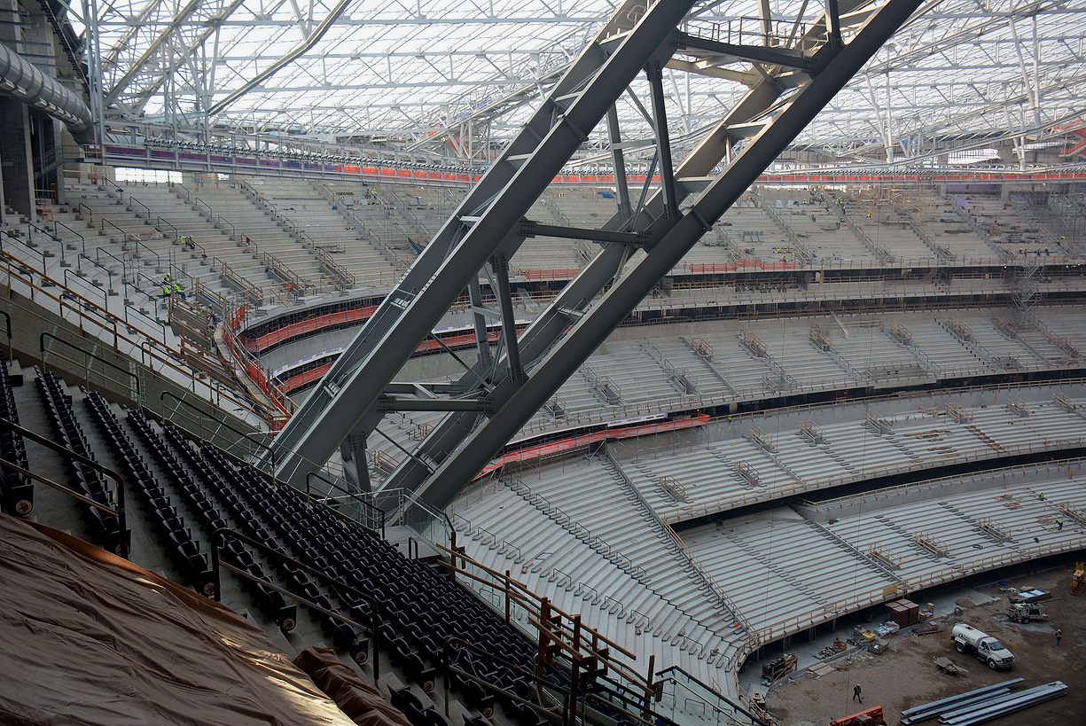 Pour la capacité, la page wikipedia du stade parle de 66 200 places extensible à 73 000 pour le Super Bowl.