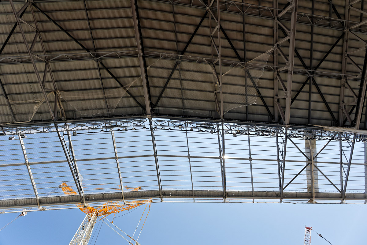 "Côté travaux, les choses "avancent bien", grâce au travail quotidien des 800 ouvriers. "Le toit sera intégralement posé d'ici à la fin de l'été, explique Xavier Pierrot, le stadium manager du Grand Stade. Nous avons mis en place les premiers sièges, et la pelouse sera posée à l'automne." Le tout pour une livraison prévue pour la deuxième quinzaine de janvier."