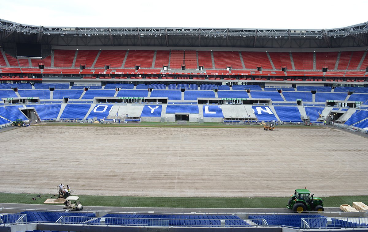 Le twitter du Parc OL annonce la pose de la nouvelle pelouse "dans quelques heures".