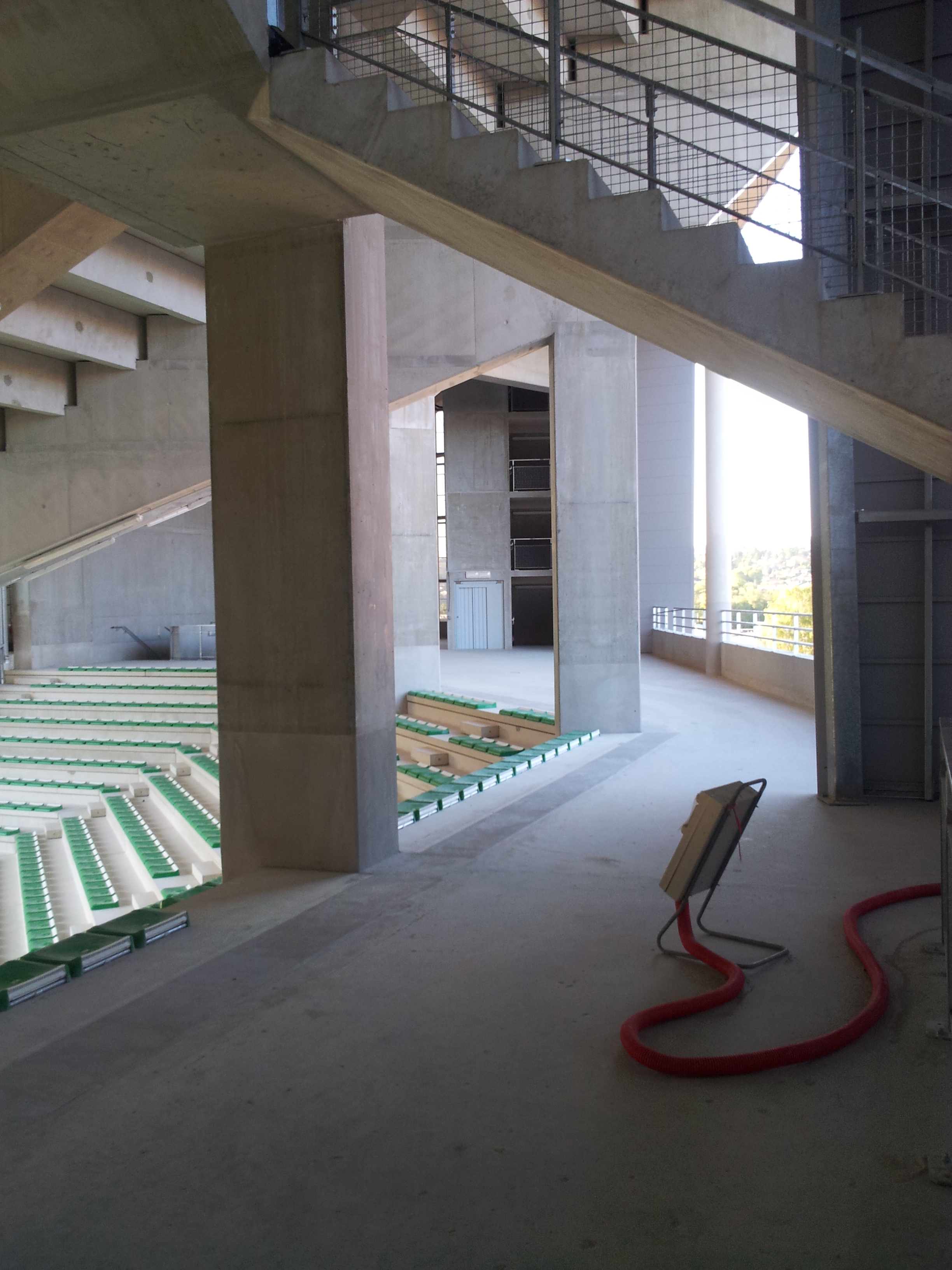 La seul chose qui me chagrine à gauche et à droite de la tribune, les deux trous ou on voit derriere....... ils auraient pas pu faire un mur qui descendent jusqu'a 2-3 metres du sol car a droite, si j'ai bien comprit, sa permet a différents camions de rentrer si il y un concert ou autres.......... mais vivement mi-septembre