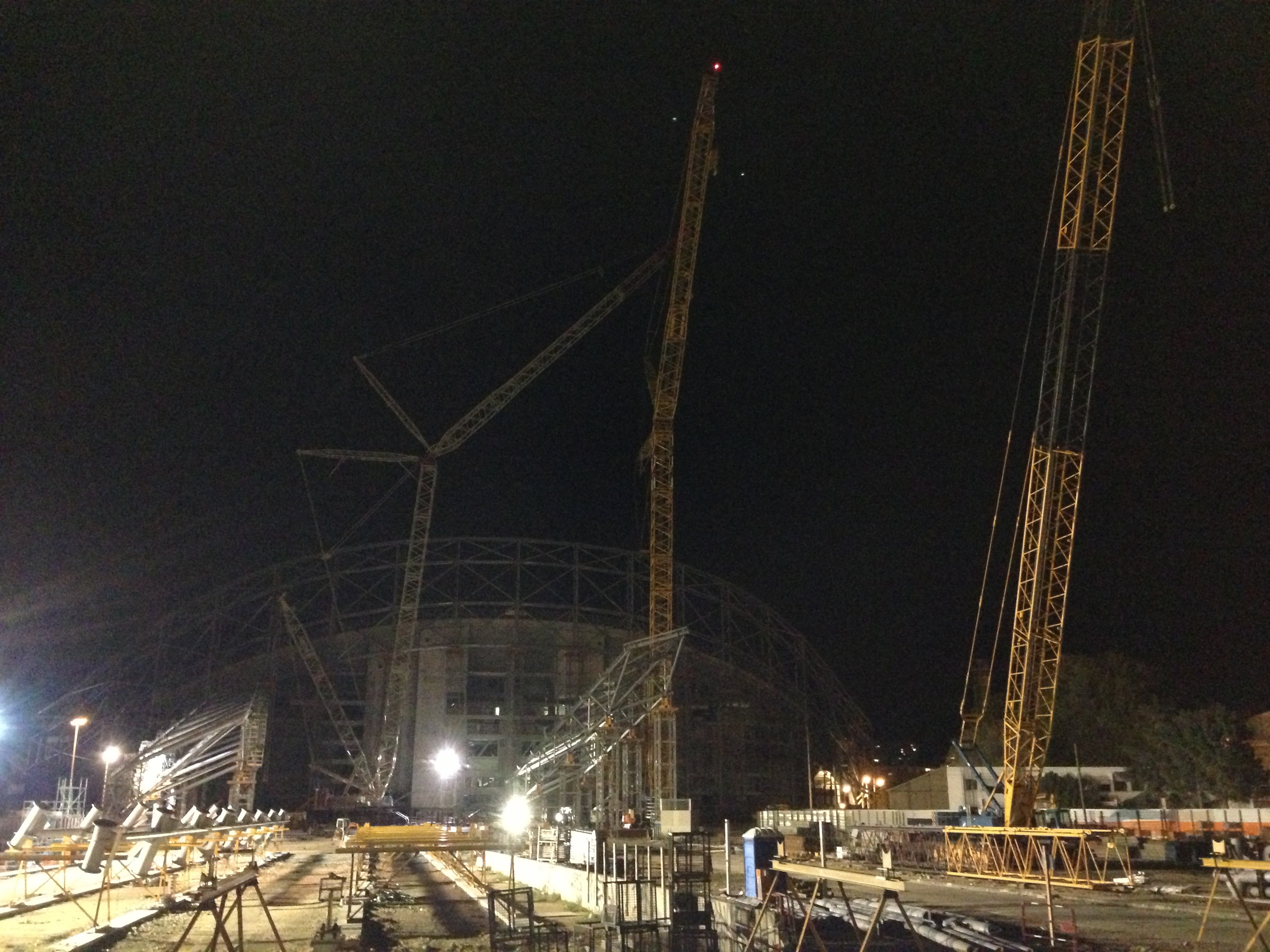 Que s'est-il passé sur le chantier en ce jour nous avons pu apercevoir en début de soirée projecteur du stade en marche ?