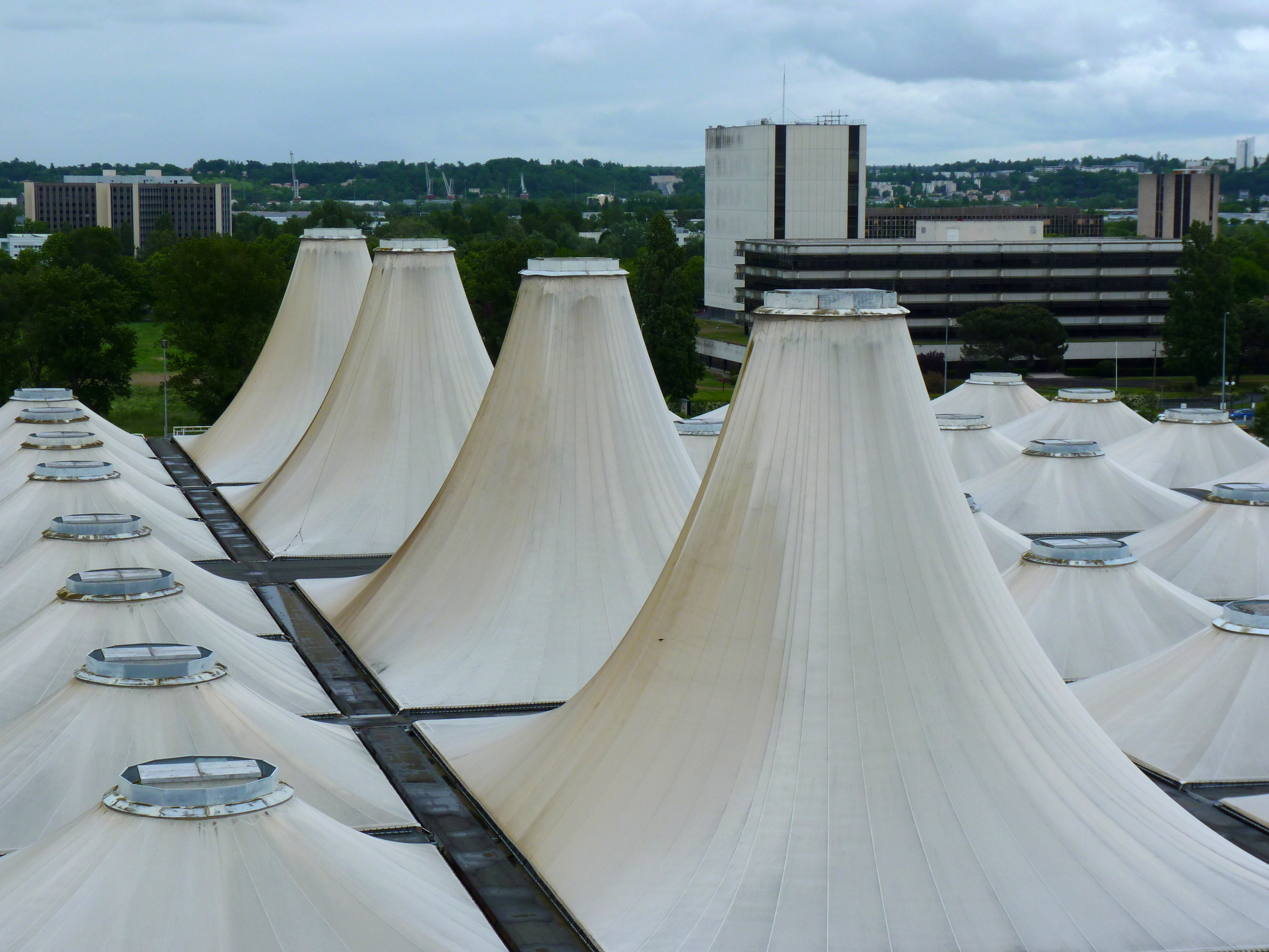 Pour ce qui est de la méthode d'assemblage, en effet ils peuvent très bien faire appel à une méga-grue à chenille associée à un près assemblage au sol pour accélérer le chantier. Mon explication n'avait pour but que de mettre en avant le fait que la structure de charpente choisie reste somme-toute assez simple, ce qui concorde avec des délais de montage courts et un prix de revient modéré.