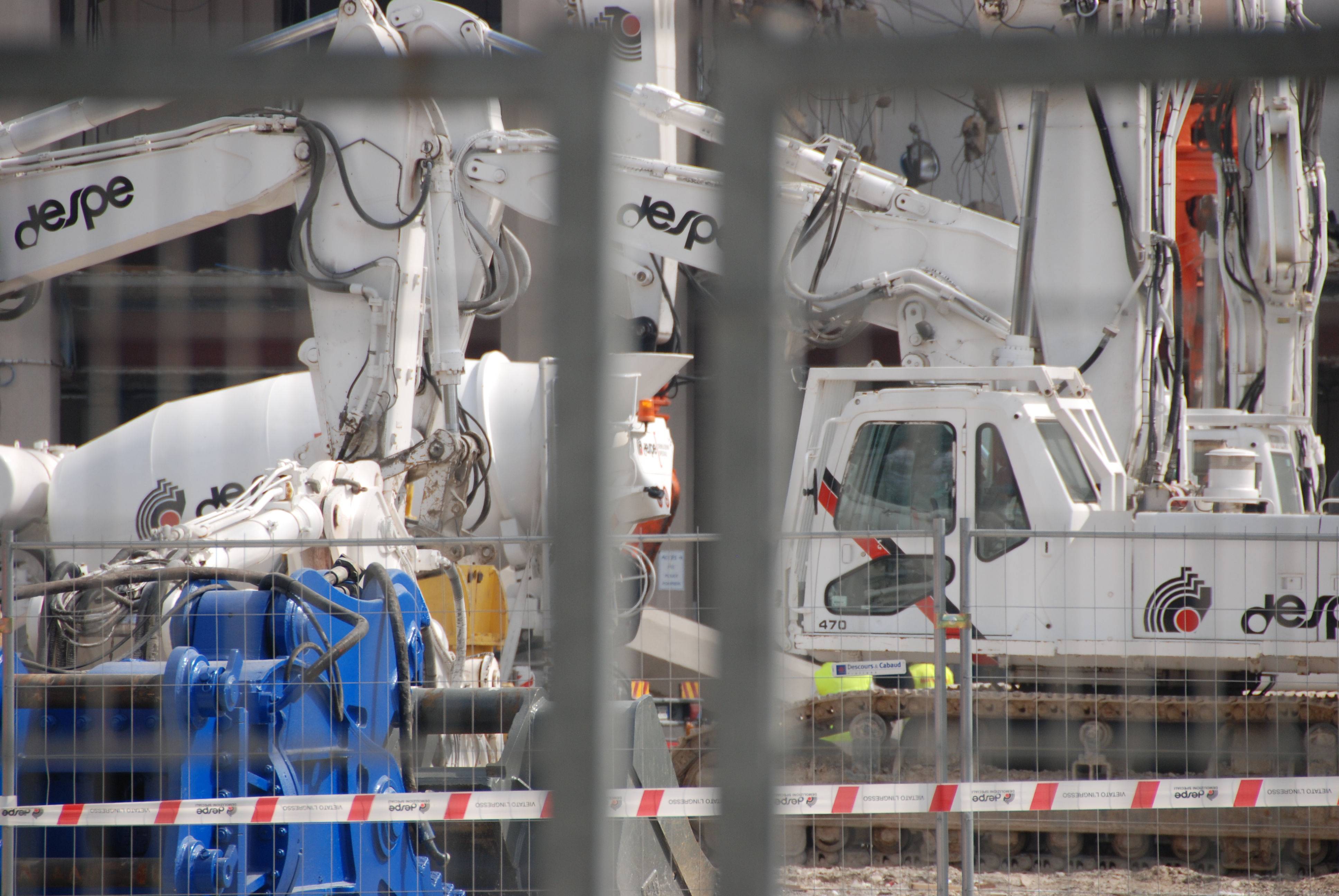 J'ai comme l'impression que la Mediaco rouge et blanche sur le parvis JB en a terminé pour le moment avec le colis simple et qu'elle s'atèle désormais au montage des radiales du colis double, ou alors ce sont mes yeux qui me jouent des tours ?