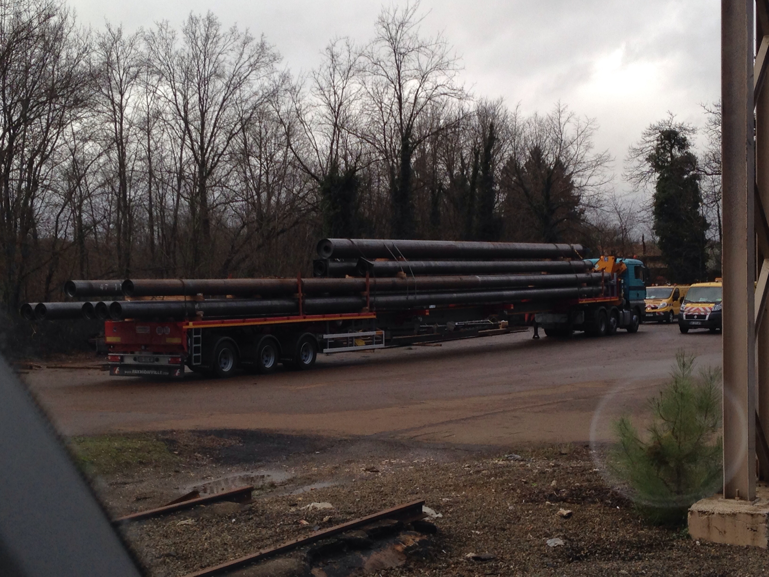 D'après le responsable peinture, il y aura une livraison de poteaux de 39 mètres demain matin sur le chantier du stade.