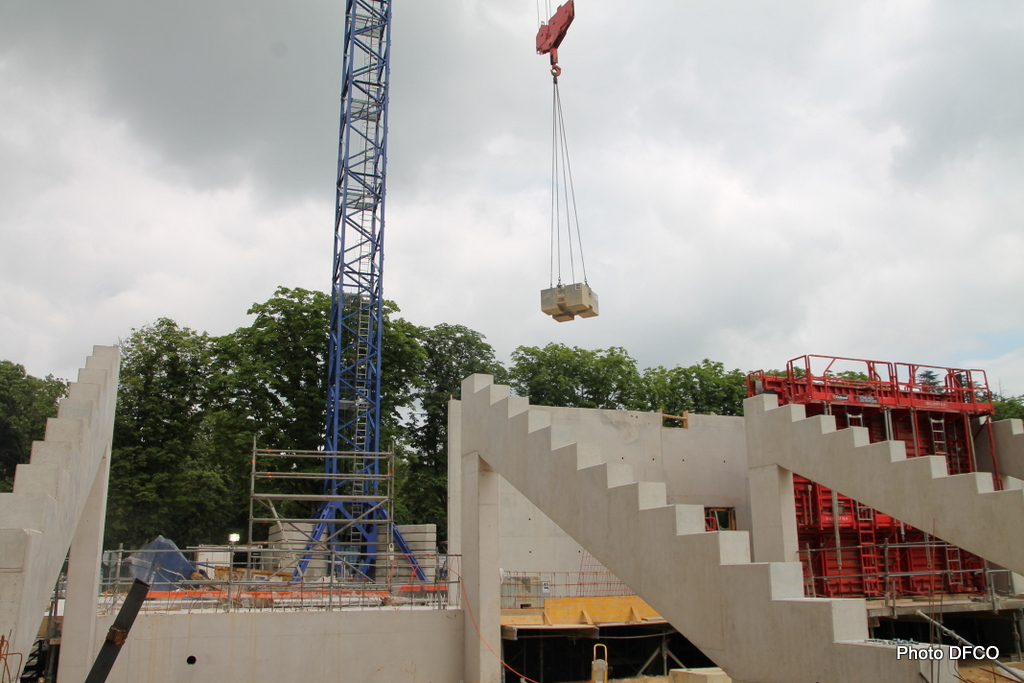 Lorsque le DFCO était en Ligue 1 la capacité du stade était plus importante (16098) il fallait donc plus de 600 places pour les visiteurs (tribune visiteurs actuellement) pour respecter le quota Ligue 1. La tribune visiteur était donc plus importante comme tu peux le voir sur la photo. Lorsque Dijon est redescendu en L2 la mairie n'a pas voulu (ni le DFCO) refaire une commande de sièges.