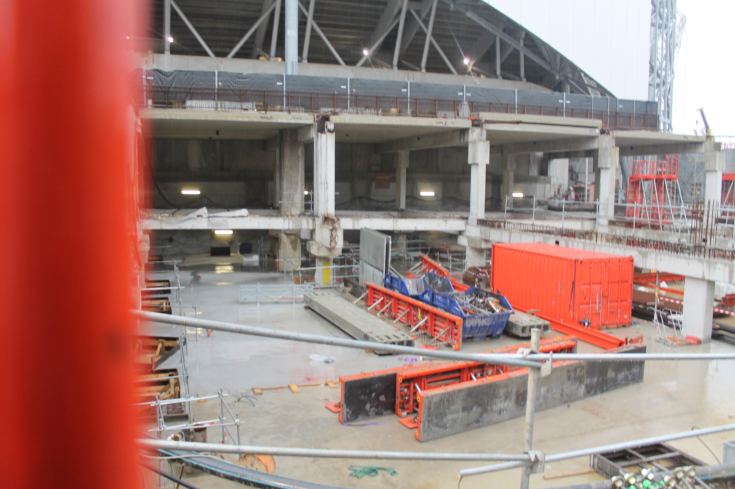 - On notera qu'ils ont déjà débanché le mur perpendiculaire, tout au fond du VN du côté des gogues visiteurs et à quasi position des escaliers.