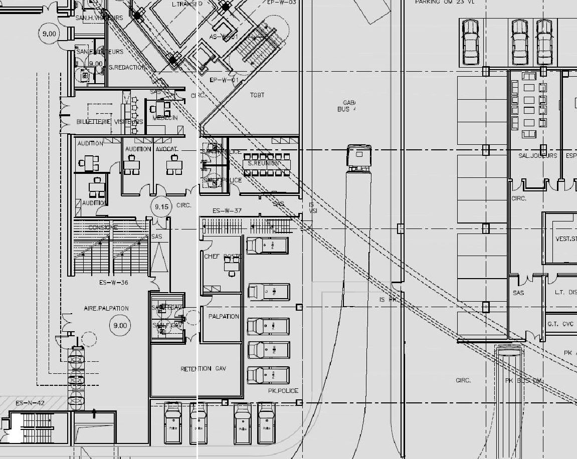 Vers nous, un énorme mur va séparer le côté droit de la VSI et le parking joueurs, ils commencent à préparer la tranchée par là.