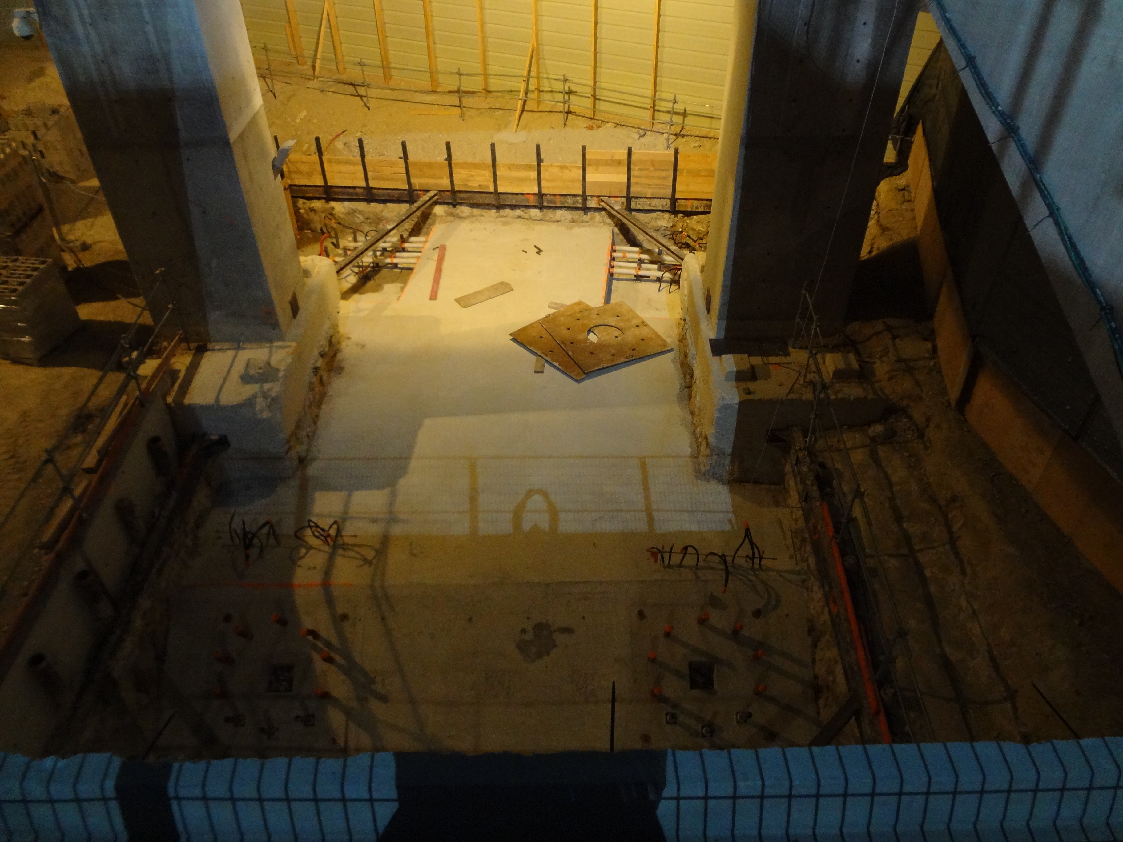 sinon pour les virages, il me semble avoir vu sur les plans que il y a une sorte de fondation sur laquelle vient de poser le bas des éléments de la charpente. Si tel est le cas, pourrions nous voir d'ici un mois ... l'installation d’échafaudages derrière les virages ? je n'arrive pas à comprendre comment il vont enterrer le poste sécurité et que le parvis donnera accès directement au virages (c'est à dire pas d’escaliers comme actuellement).