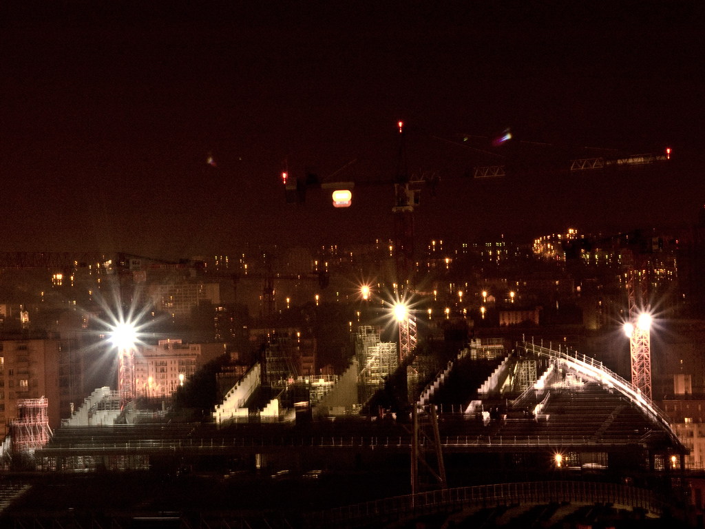 Deux photos, dont l'une de nuit... ça bosse parfois jusqu'à 3h00 du matin sur le chantier ! Doivent pas être en avance...