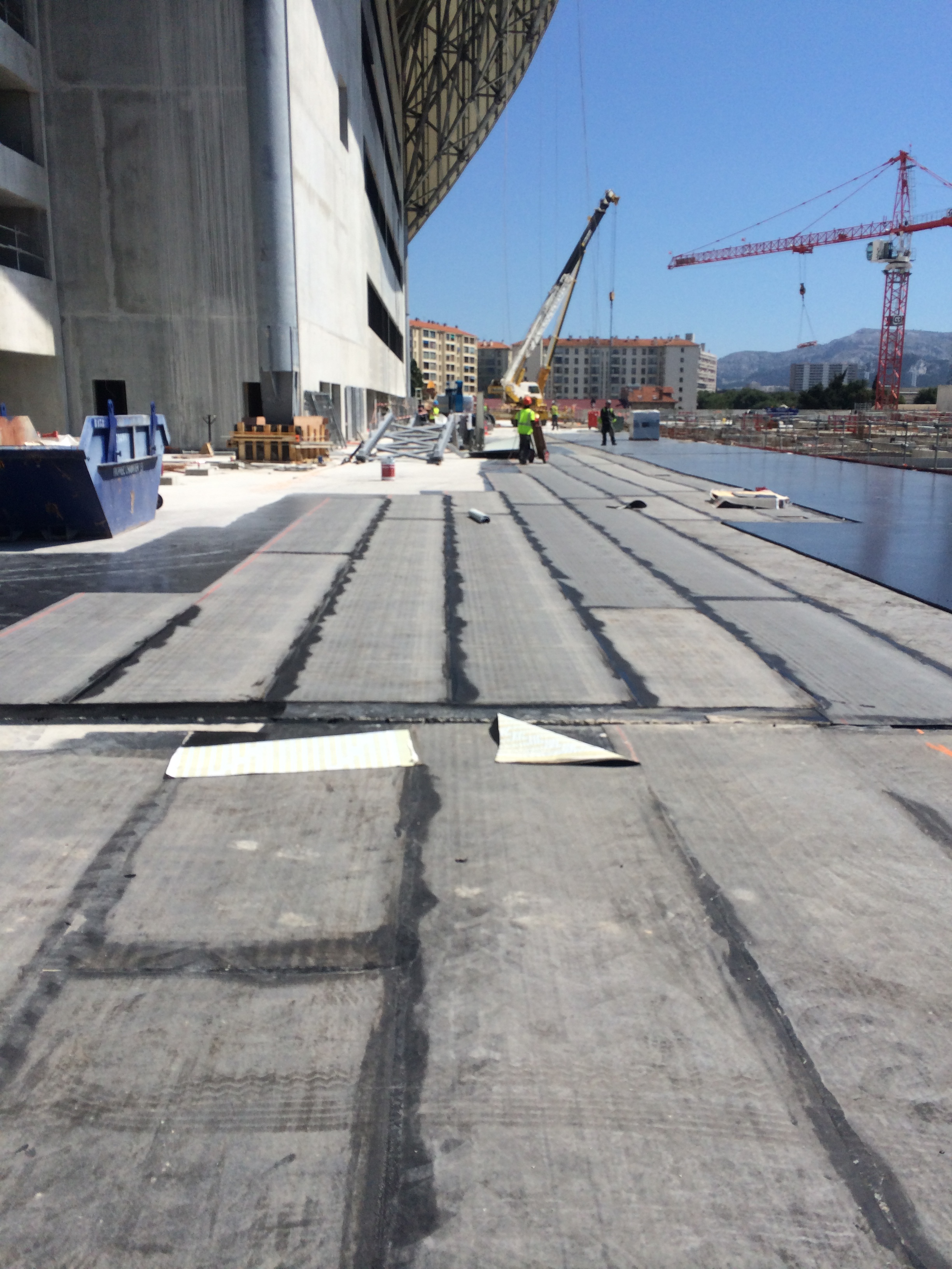 en fait, je pensais plutôt au revêtement qu'on peut apercevoir au pied de la façade — (ce n'est pas la même que celle que tu montres sur ton image, non ? (qui a plus l'allure d'un bitume classique posé sur les routes…)Mercivelodrome2014 a écrit :Bonne question, elle s'était déjà posée quand ils ont étalé l'étanchéité sur la piscine.Célony a écrit : en regardant une autre photo de Santa, on peut apercevoir ce qui semble quand même être le revêtement final sur le parvis - à droite, sur l'image.