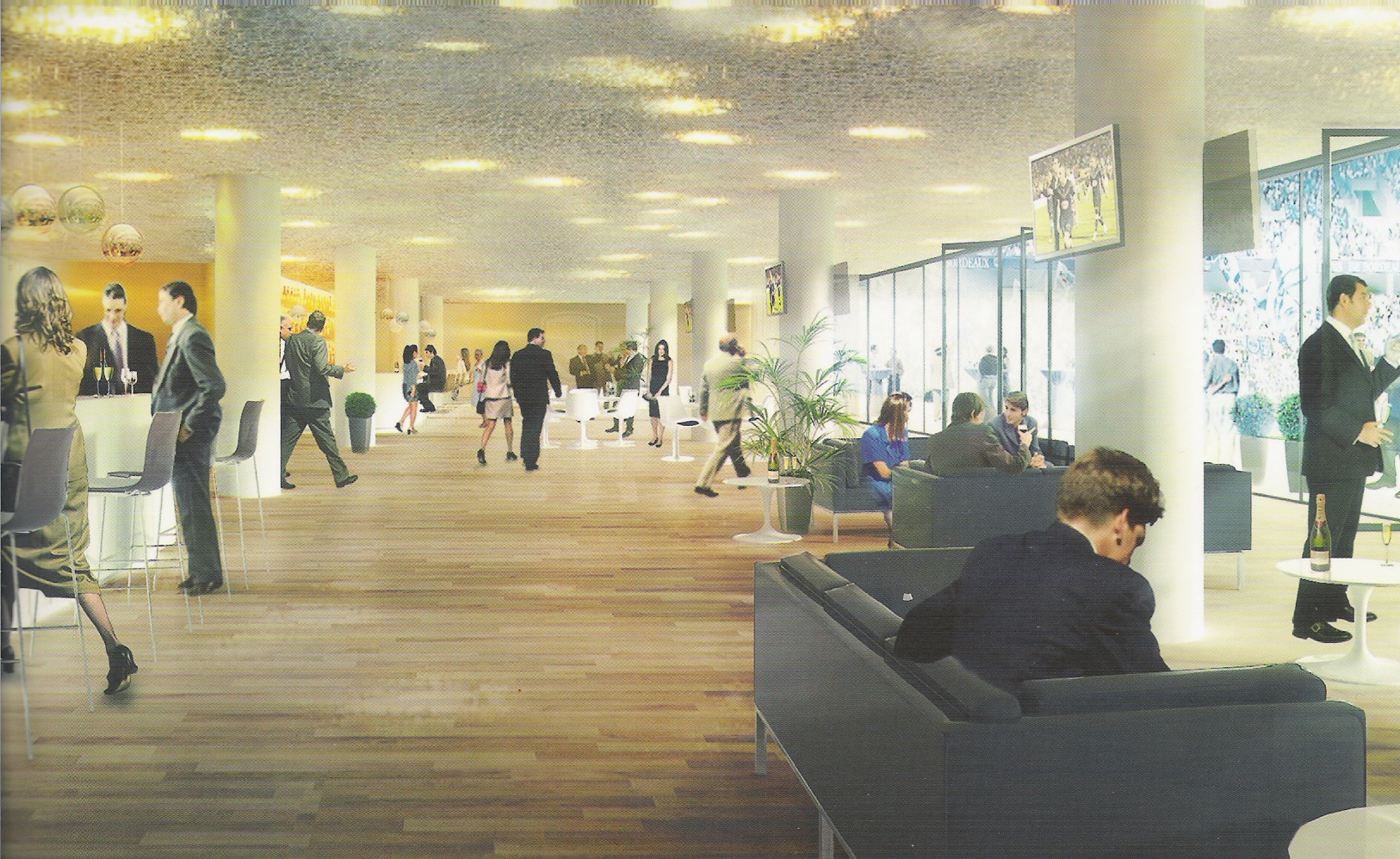 Salons prestige (4000 m²) + terrasse de 8 mètres de large sur toute la longueur des tribunes
