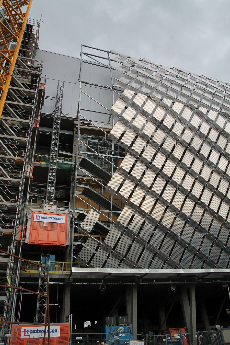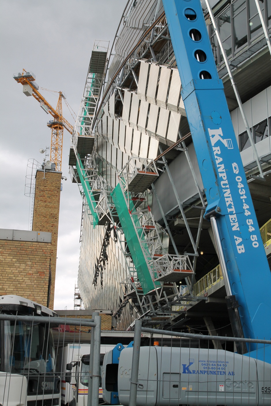 Photos du jour du Stockholmarenan avec la pose de la structure qui permettra la couverture des tribunes (sur la gauche du stade) :