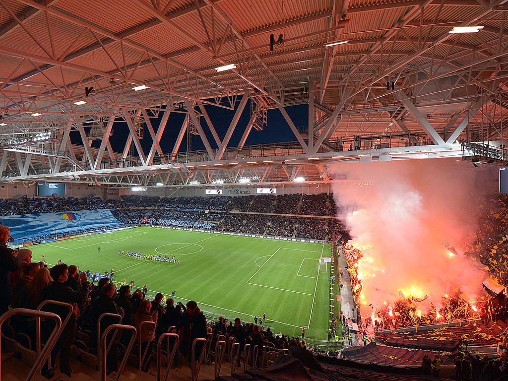 Les fans affluent quasiment tous dans le dernier quart d'heure. Très peu de chants ni de sifflets en avant match. Mais lorsque le "Capo" lance la tribune, la caisse de résonance est impressionnante. Le kop est quasi plein, et au moment du coup d'envoi, seul la tribune visiteur est vide. Sur environ 30 000 places, quasiment 18 000 personnes ont pris place dans le stade. Belle surprise. Niveau chants, le répertoire semble large et bien que je ne comprenne rien à la langue Suèdoise, quelques chants sont similaires à ce que l'on peut entendre partout en définitive... si ce n'est quelques poussées mémorables bien de chez eux, avant et après le but des locaux. Le nom "Ultras" n'est alors pas usurpé lorsque l'on chante durant 90 minutes et que l'on accompagne les attaques de son équipe.