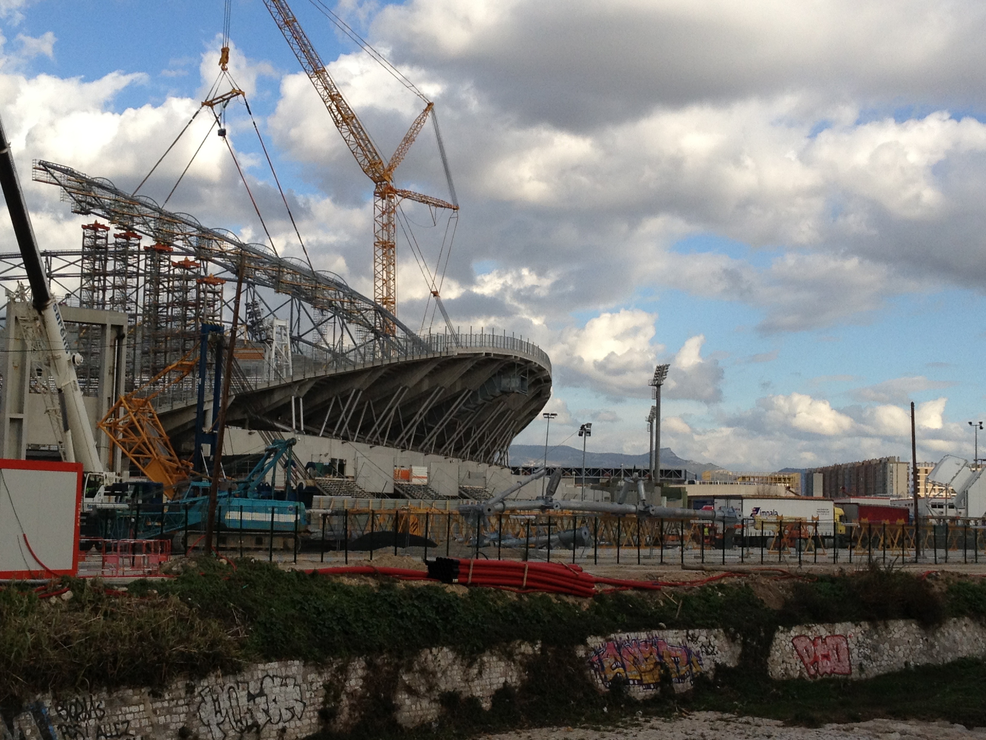 Il manque encore des palées.... 1 colis par jour, il va falloir quelques jours pour finir la pose des colis, sachant qu'il faut jongler avec les matches à domicile et la météo...