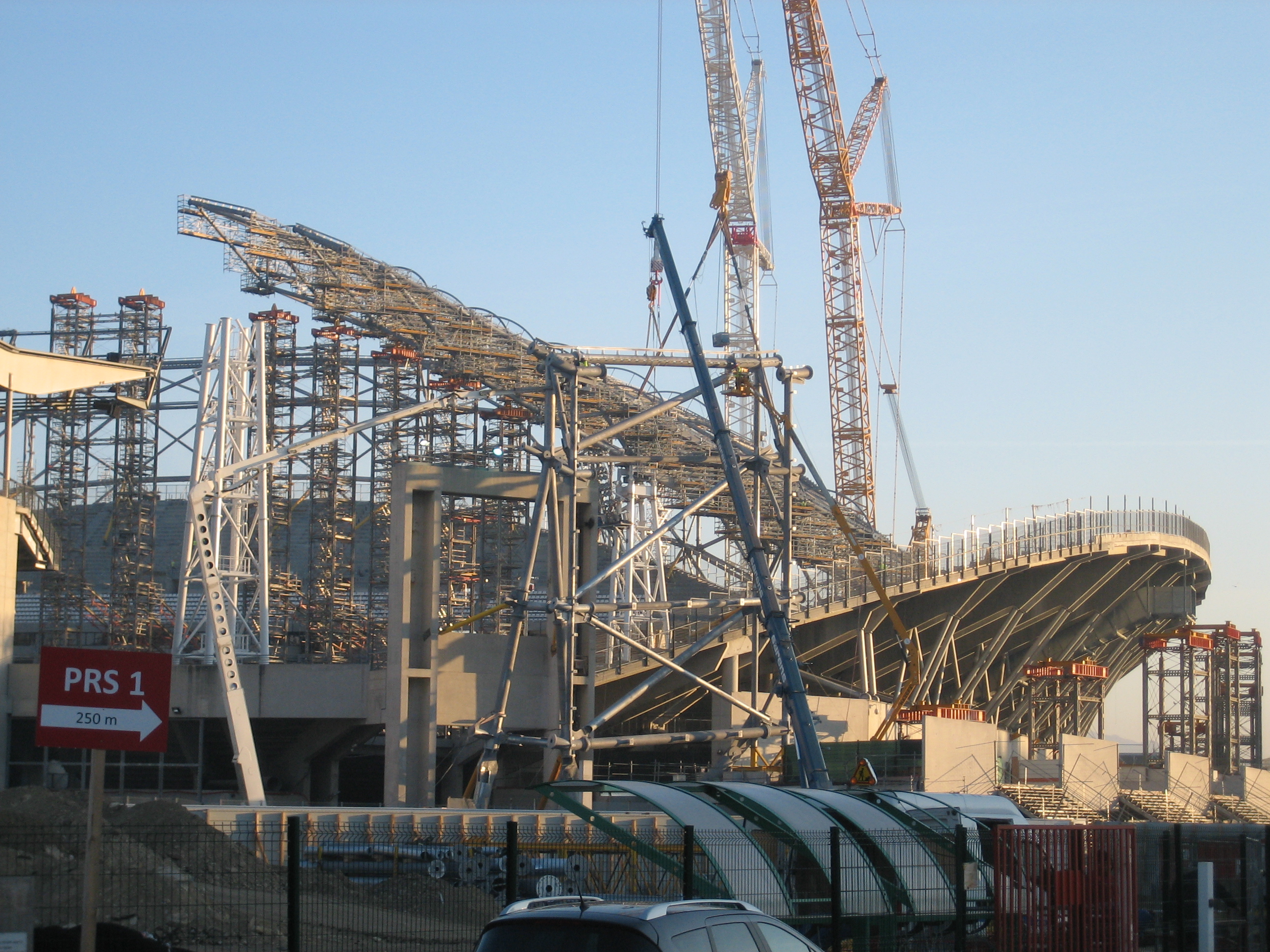Si on en croit la photo de yeye de ce matin prise a 9h. la deuxième radiale était en position et la 180t ne la tenait pas. Donc a moins qu'il y et eu un gros soucy et qu'ils ait du la démonter ou la rattacher ce qui me parait peut probable vu l'avancer des contreventement a 9h. Si elle est revenu en position c'est surement pour placer la 3e radiale. On aura vite la confirmation par photo avec peut être un de nos photographe qui passera dans le coinwaddle71 a écrit :J'aimerais bien être optimiste comme vous, mais comme je distingue plus la 180 tonnes sur la webcam, c'est difficile de savoir s'ils posent la 3ème radiale aujourd'huimarseillevivi13 a écrit :Donc on peut être sur que la troisième radiale et en cours de pose.. Et dés demain on pourra suivre l'avancer de la jupe du virage sud a la webcamyeye13 a écrit :Photos des 2 radiales du virage sud, ce matin à 9h![]()