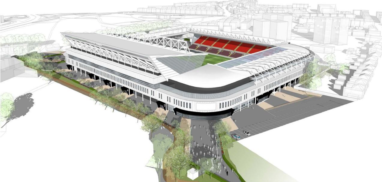 Le coût du stade seul est estimé à 40 millions de £ (47 millions d'euros) et les infrastructures autour du stade à 120 millions de £ (141 millions d'euros).