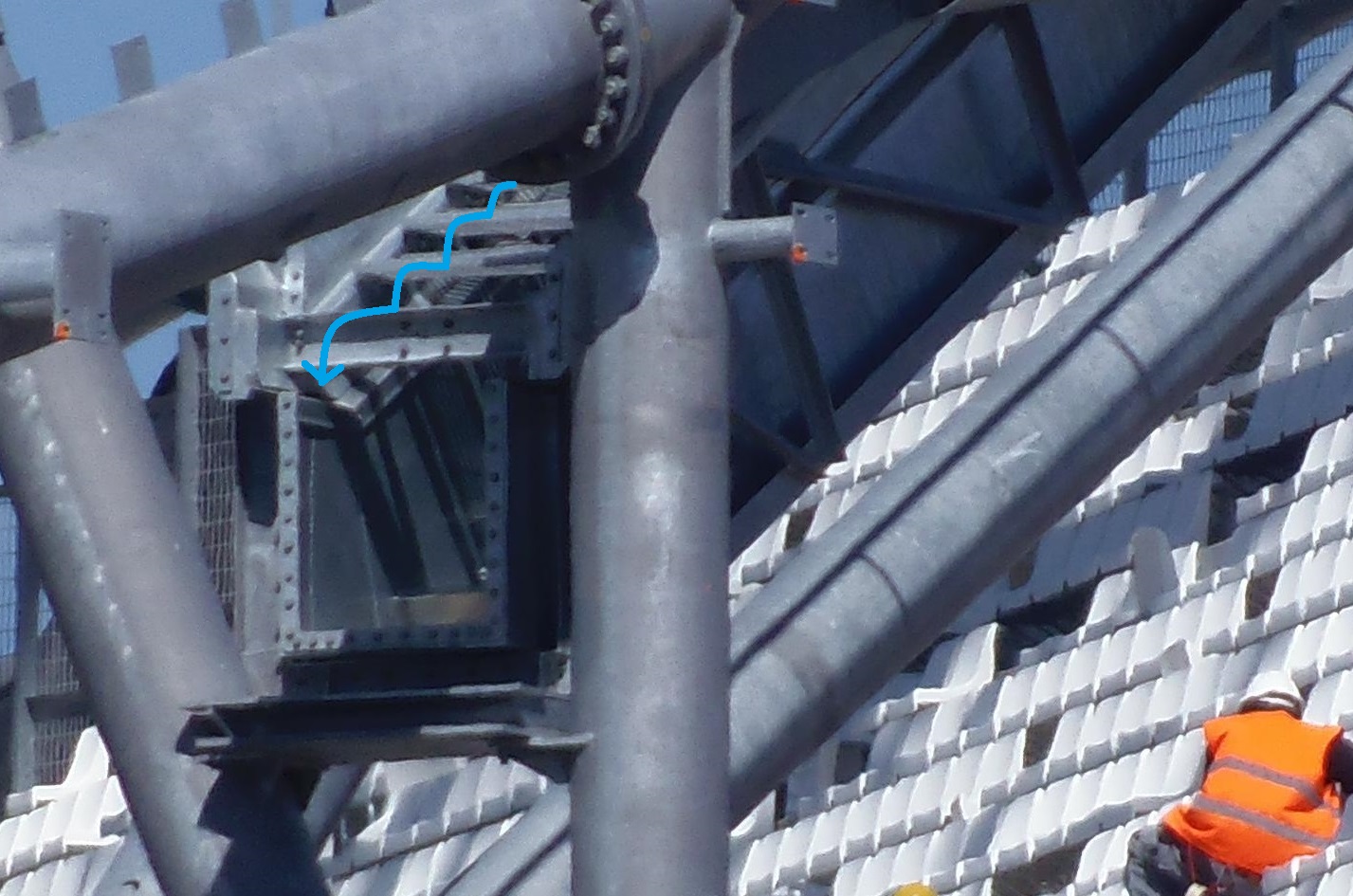 Mettre des escaliers sur les goutières permet de faire un chemin technique faisant tout le tour du stade, c'est bien pensé.