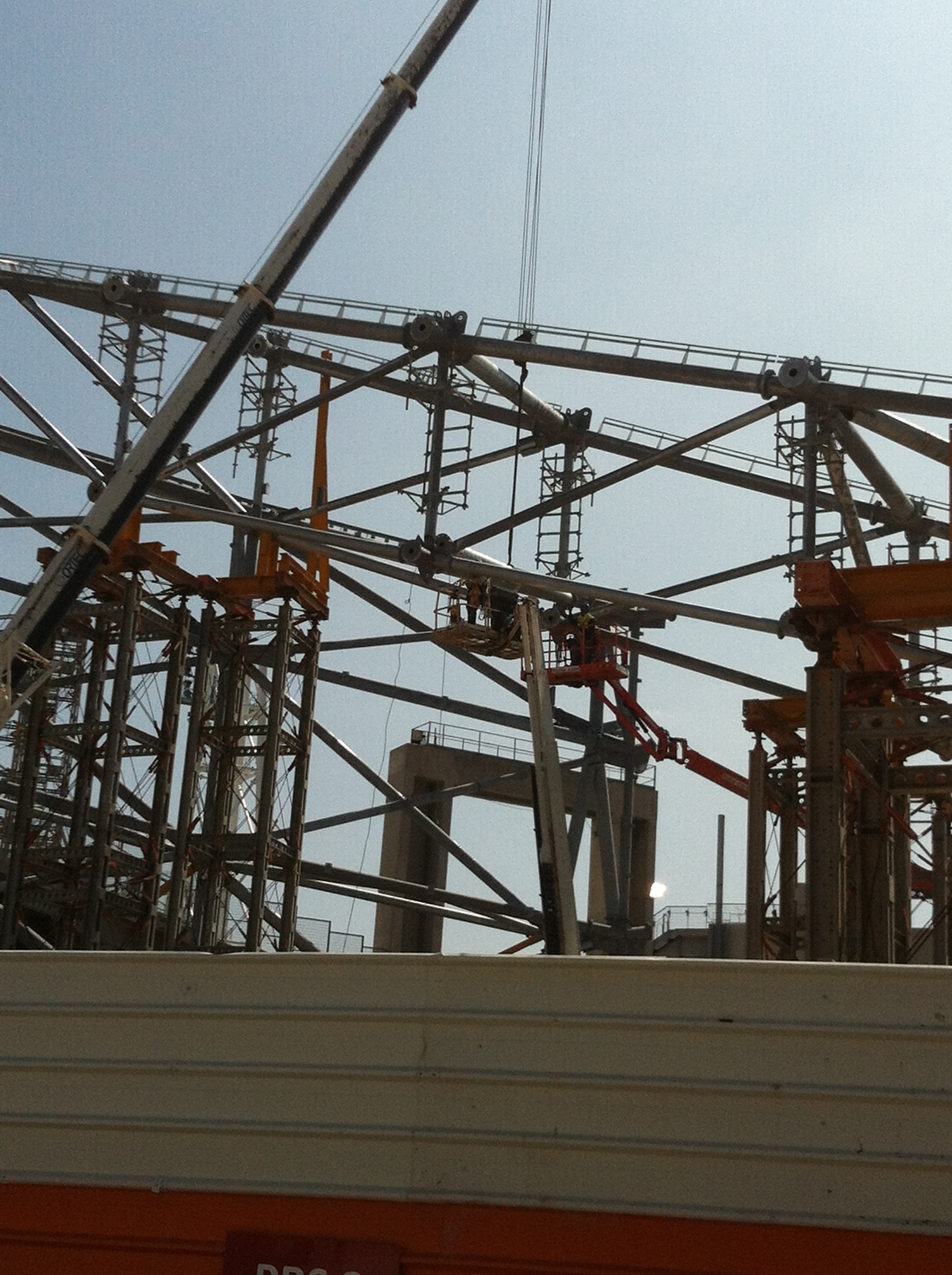 Le futur colis est en cours d'avancement. Pose d'un contreventement en cours.