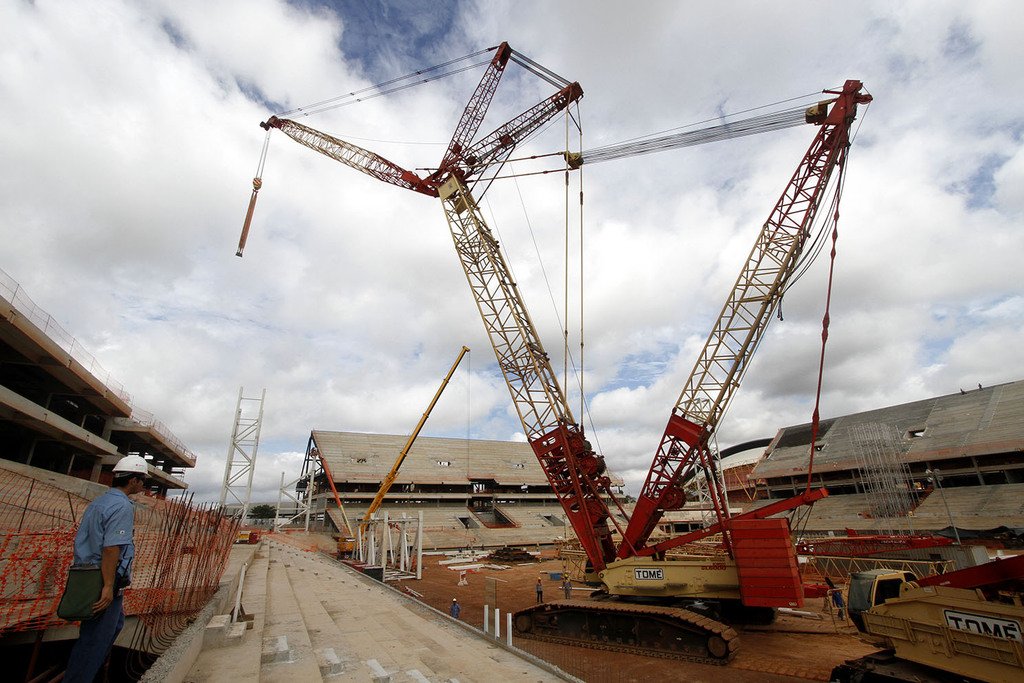 On a aussi le stade du Palmeiras à São Paulo, en cours de construction, qui est assez curieux et original puisque sur un côté en arrière des buts les gradins suivent une forme ovale et de l'autre cotê les gradins suivent de plus près les lignes de touche, comme les exemples que je viens de citer..