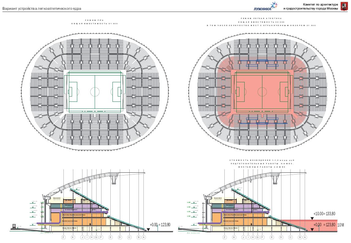 Suite à une réduction de budget pour la rénovation du Stadion Luzhniki, la capacité maximale du "nouveau stade" sera de 81 000 places au lieu de 89 000 prévues initialement.
