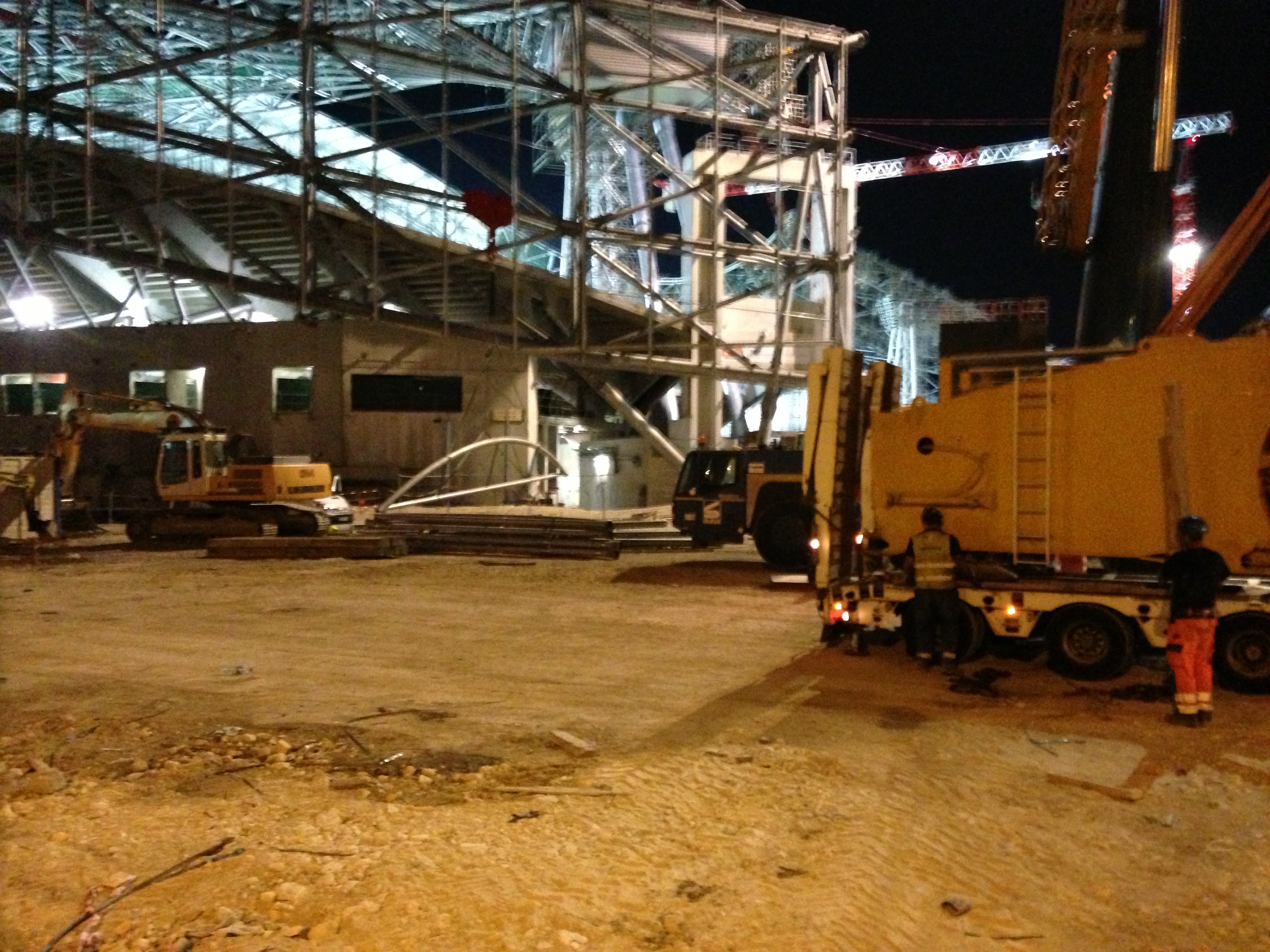 Il y a eu pas mal de poses d'arceaux côté VN mais il me semble qu'el en reste encore qques uns au sol sur la parvis nord. La LR 1750 a bien bossé elle aussi avec des poses de contreventements et ça continue encore ce matin.
