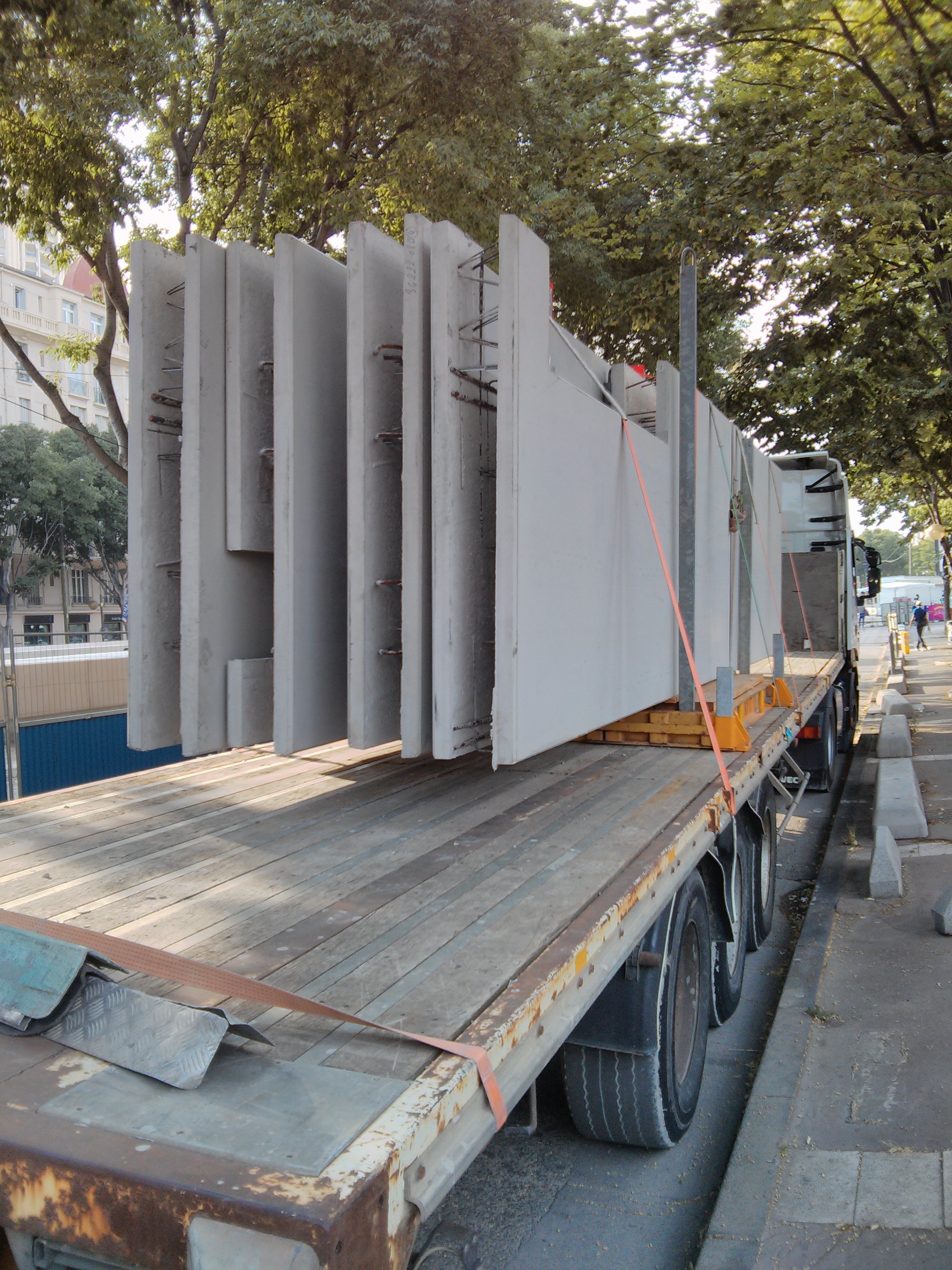 C'est une livraison d'éléments préfabriqués pour Jean Bouin. On a pas souvent l'occasion de les voir de près donc je poste