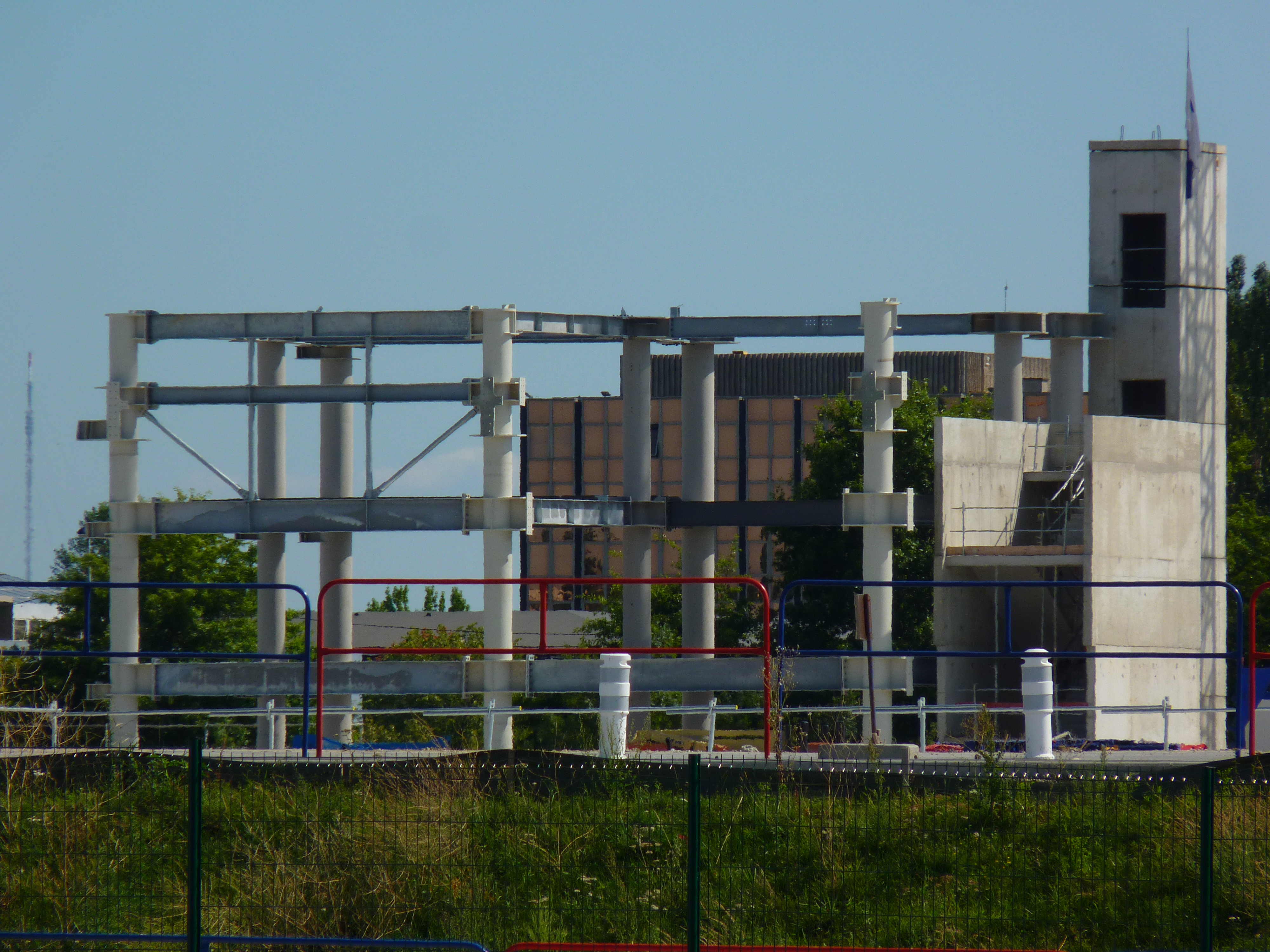 À ce jour, tout le sol bétonné nécessaire pour supporter l’ouvrage est terminé. Ce qui est considérable : 35 000 mètres carrés de planchers ! Et c’est sur ces immenses terrasses que commencent à s’élever les constructions. « Mi-octobre, toute la partie béton de la structure sera terminée. Le reste sera métallique », indique le directeur du chantier.