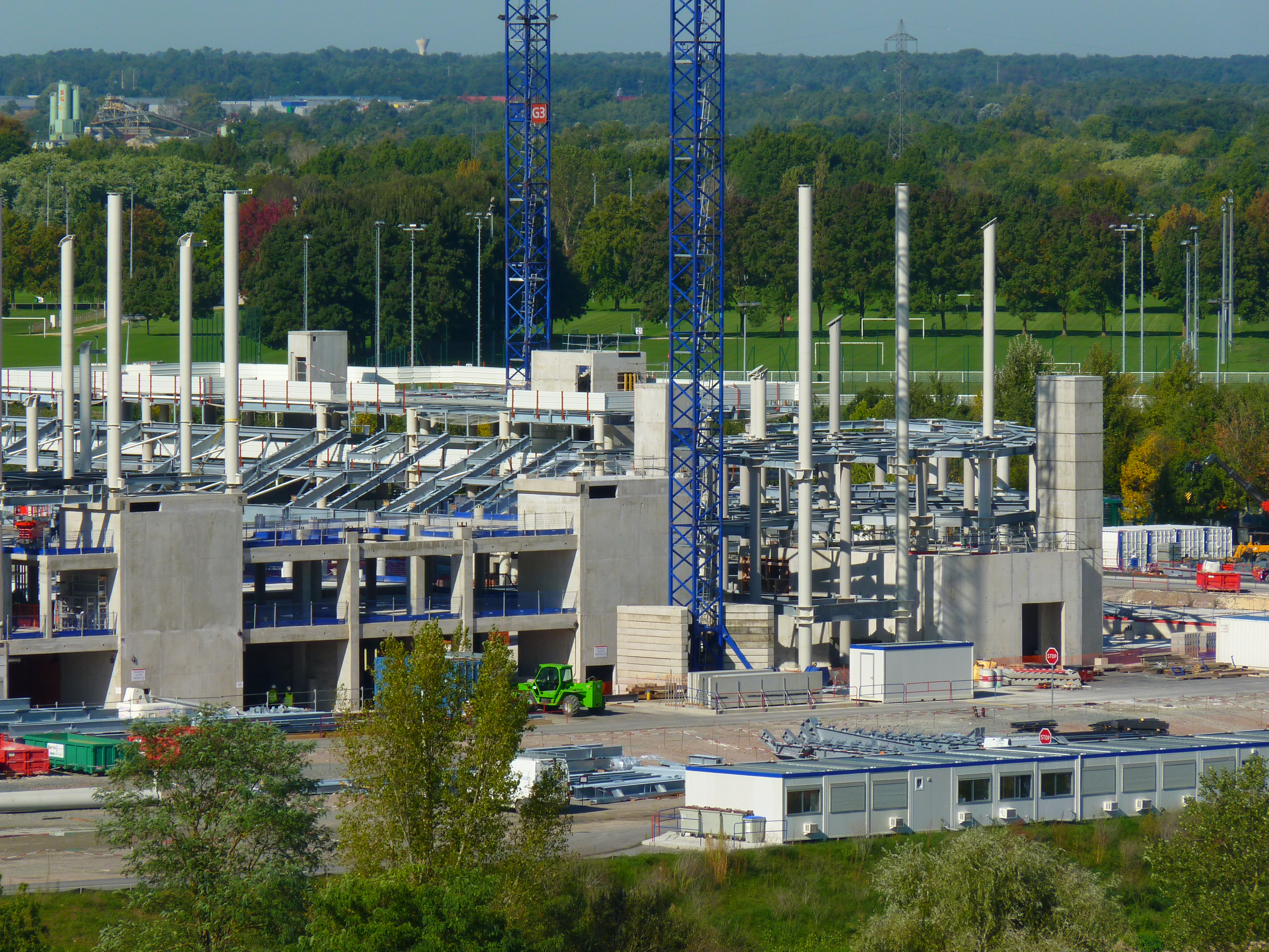C'est marrant sinon qu'ils coulent du béton pour les étages dans les virages en acier. J'aurai pensé qu'il y aurai plutôt des planchers en composites préfabriqués