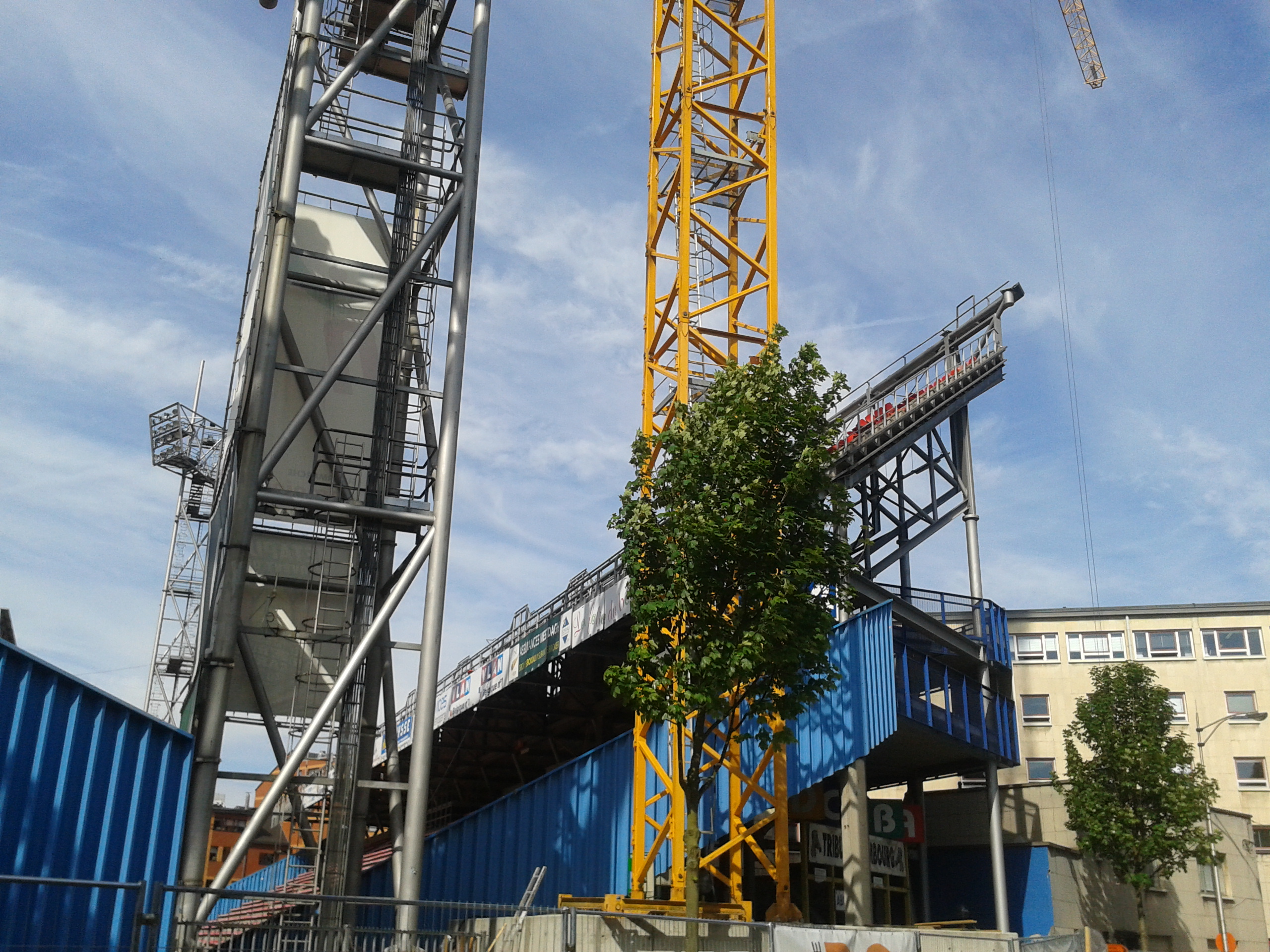 La démolition de ce stade a été décidée par le conseil communal de Charleroi, eu égard au non respect des règles urbanistiques en vigueur. Il sera remplacé par un stade de 25.000 ou 45.000 places à Marchienne-au-Pont (banlieue de Charleroi), cette capacité dépendant de l'organisation ou non de la Coupe du Monde de football par la Belgique et les Pays-Bas en 2018.