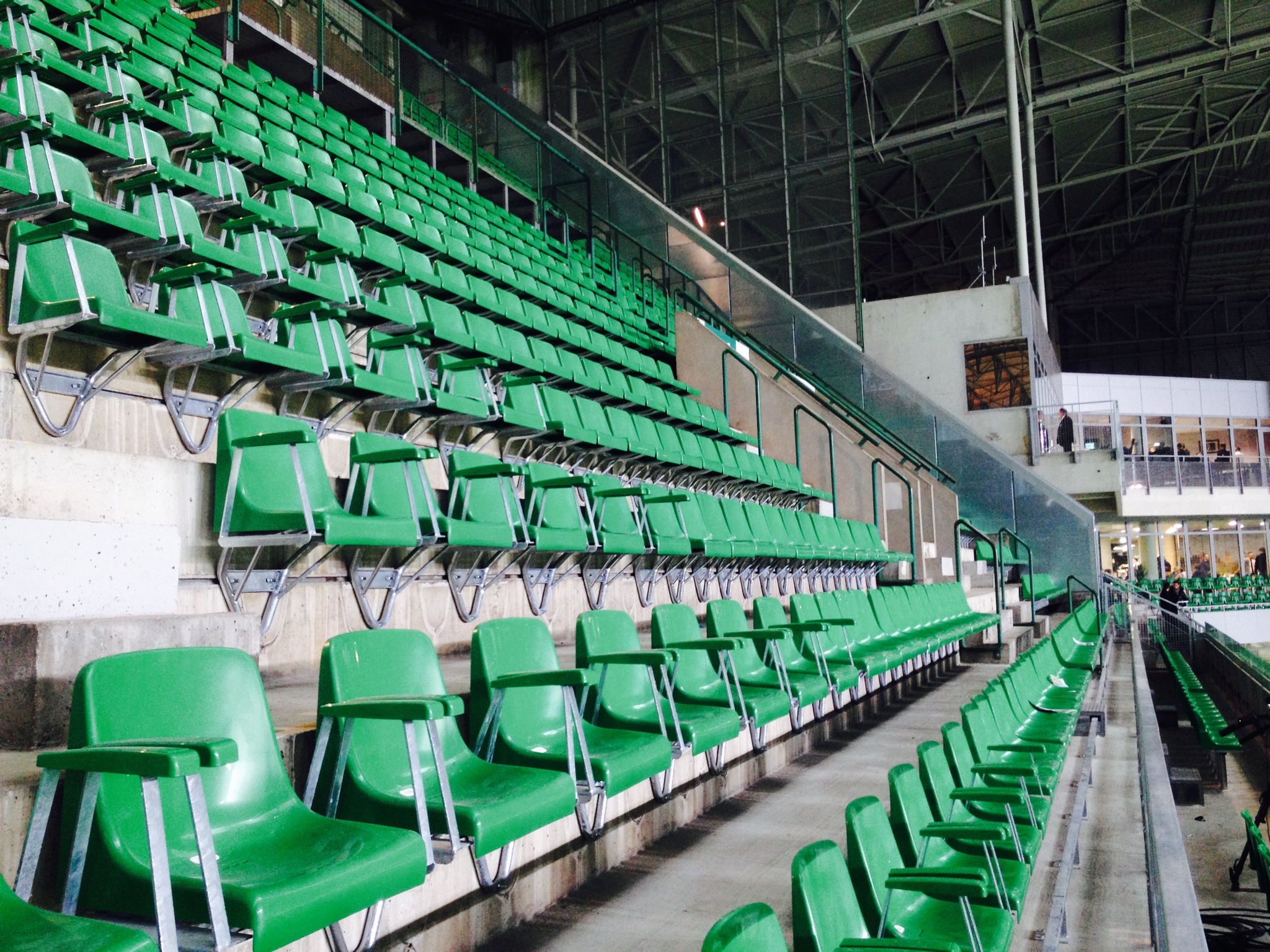 Une grande partie des sièges en Faurand supérieur deviennent des sièges "VIP" c'est à dire des sièges avec accoudoir, sensés être plus confortables, bon on est pas mal assis, mais c'est pas non plus complètement dingue. Il n'y a que la partie la plus haute de Faurand nord où on retrouve des sièges sans accoudoirs, pour des spectateurs qui n'achètent pas de prestation supplémentaire.