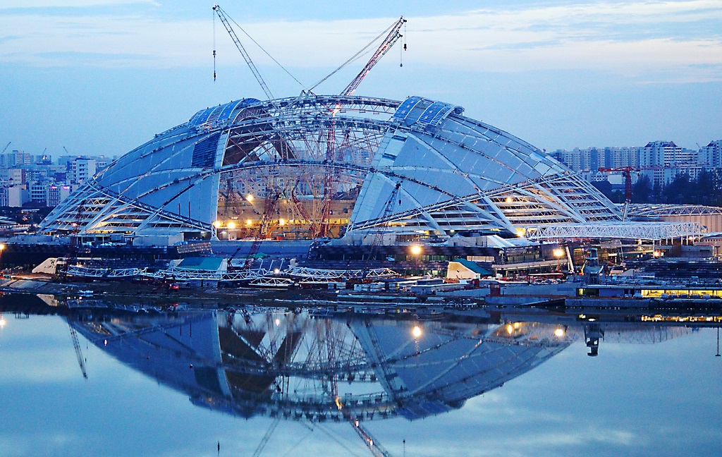 Plus important PPP sportif au monde, coût de conception-construction qui approche le milliard d’euros, 4500 ouvriers au plus fort du chantier… En livrant un temple Singapourien dédié aux dieux du Sport, Bouygues surperforme en Asie.