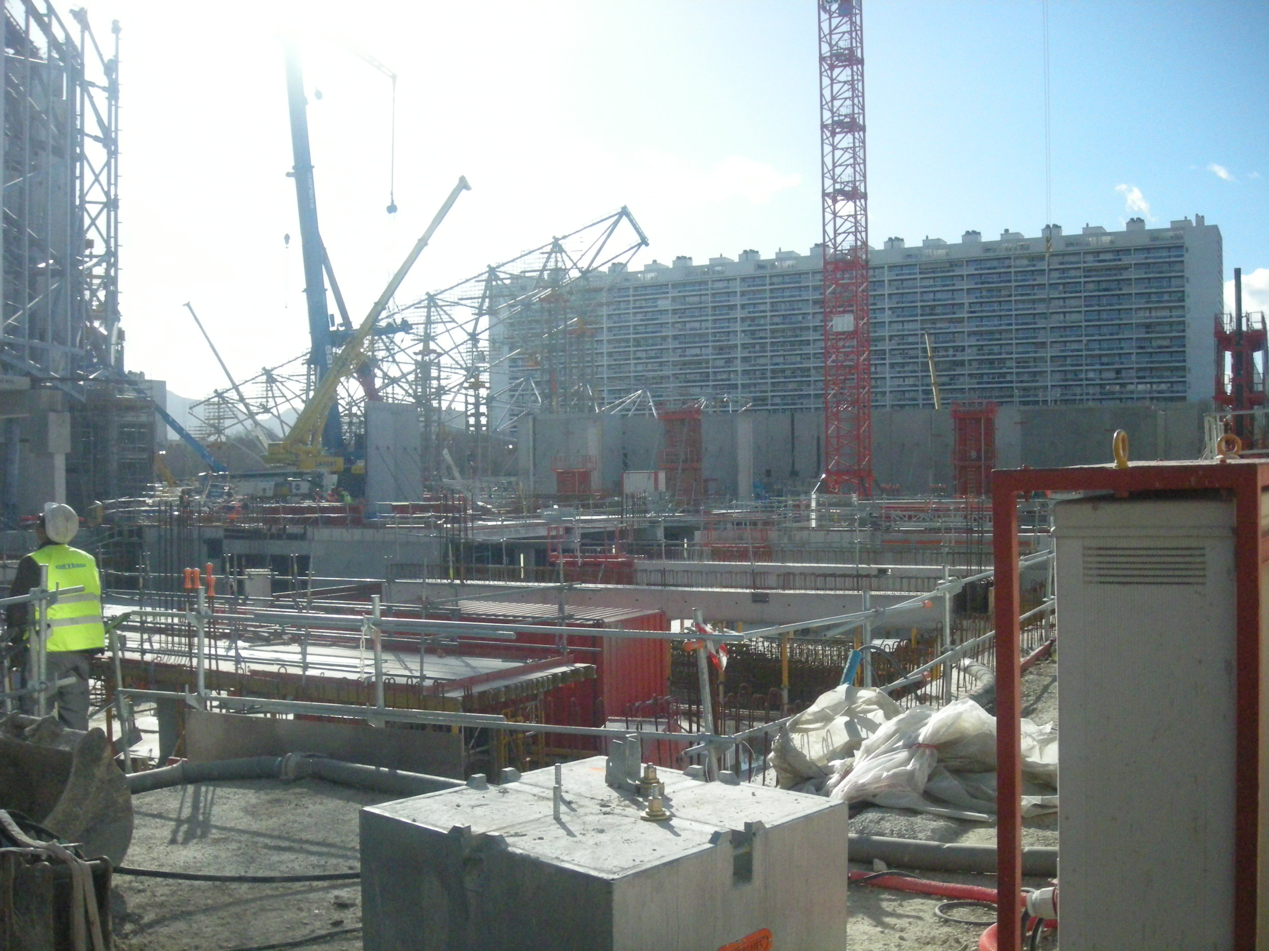 Impressionnant, le nombre de grues et nacelles en activité (une vingtaine)
