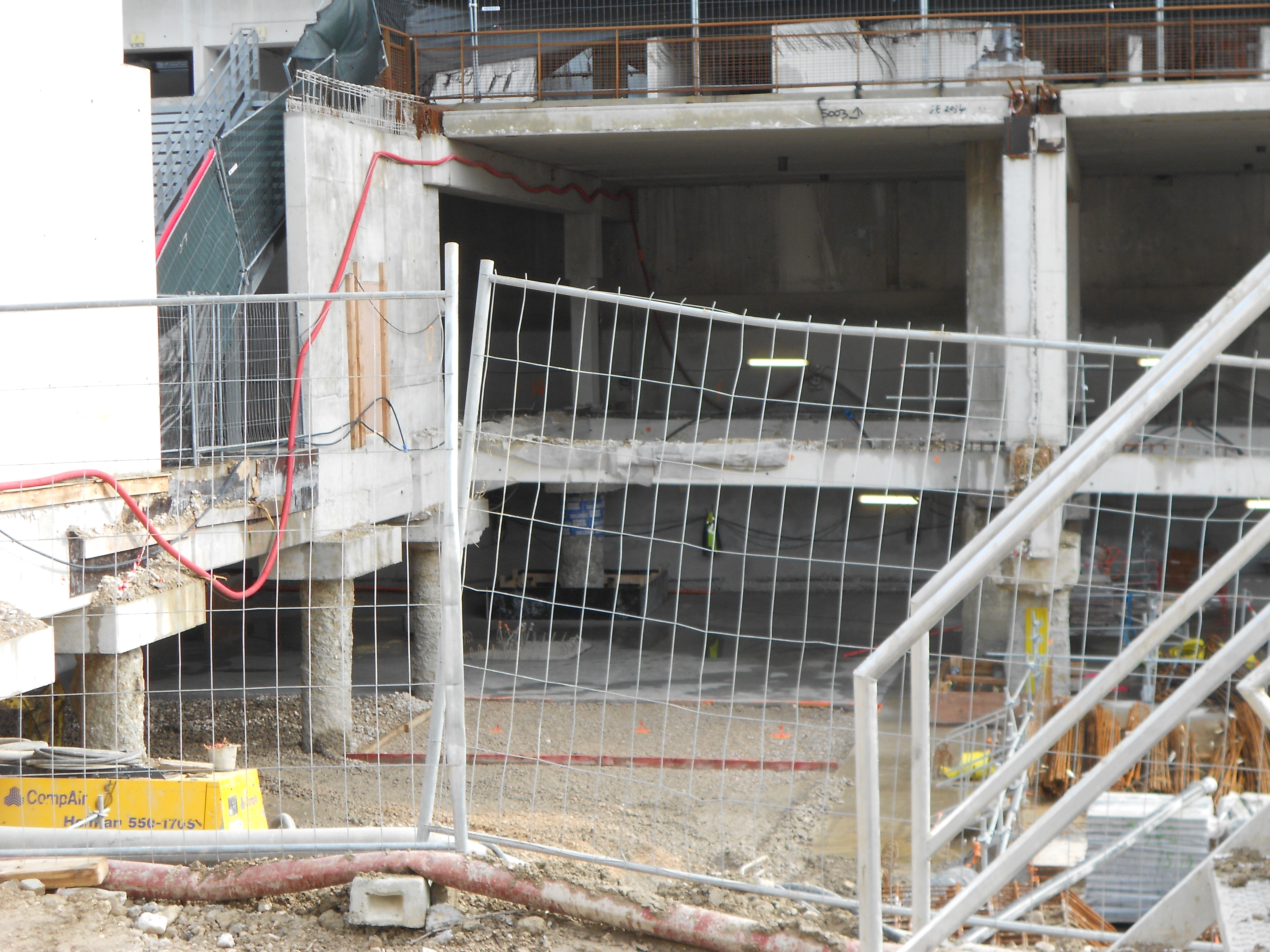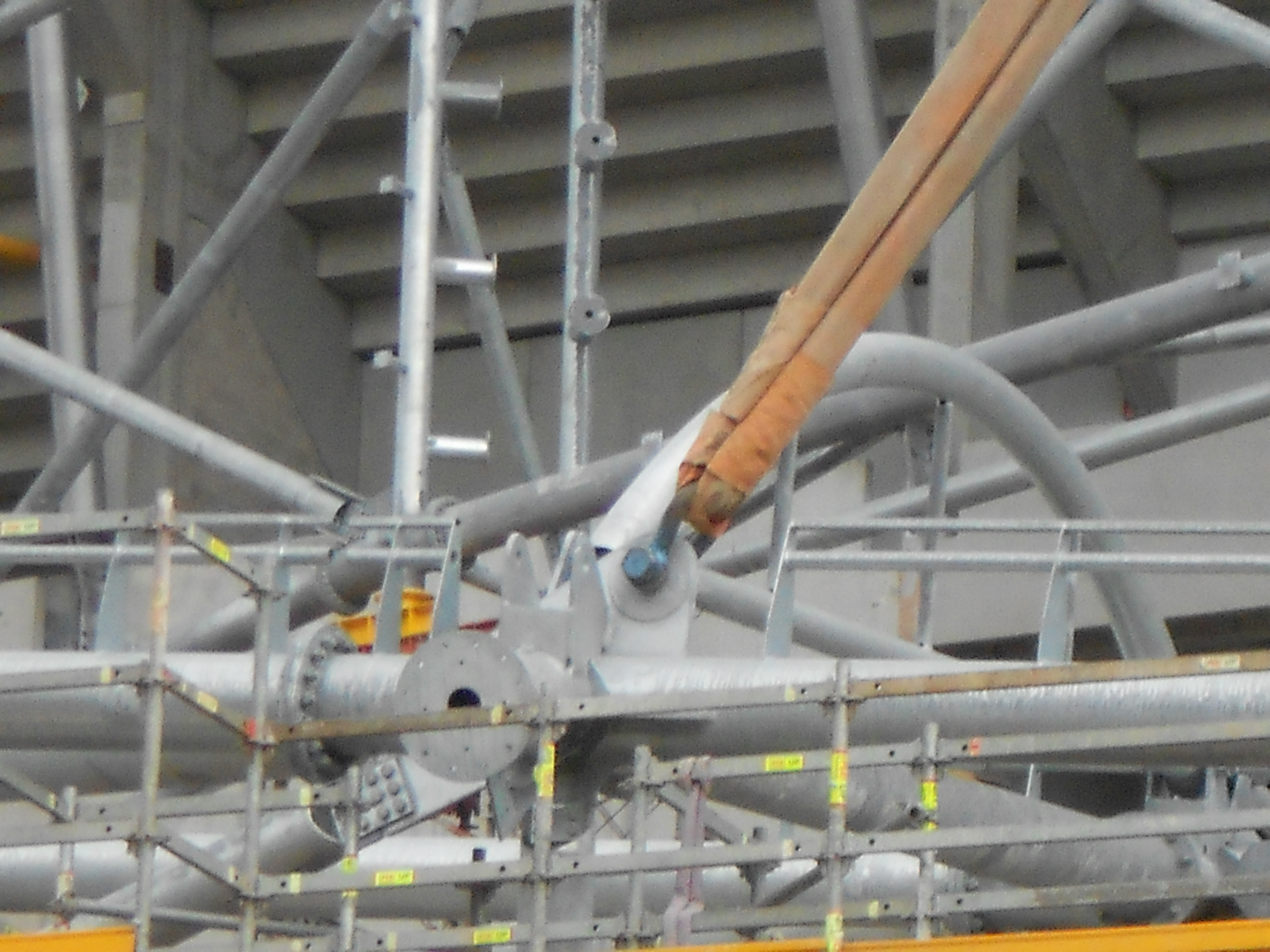La grue mobile à l'intérieur du stade s'occupe d'échaffaudage sur le deuxième colis simple coté centre, elle prepare déjà la jonction avec le colis double