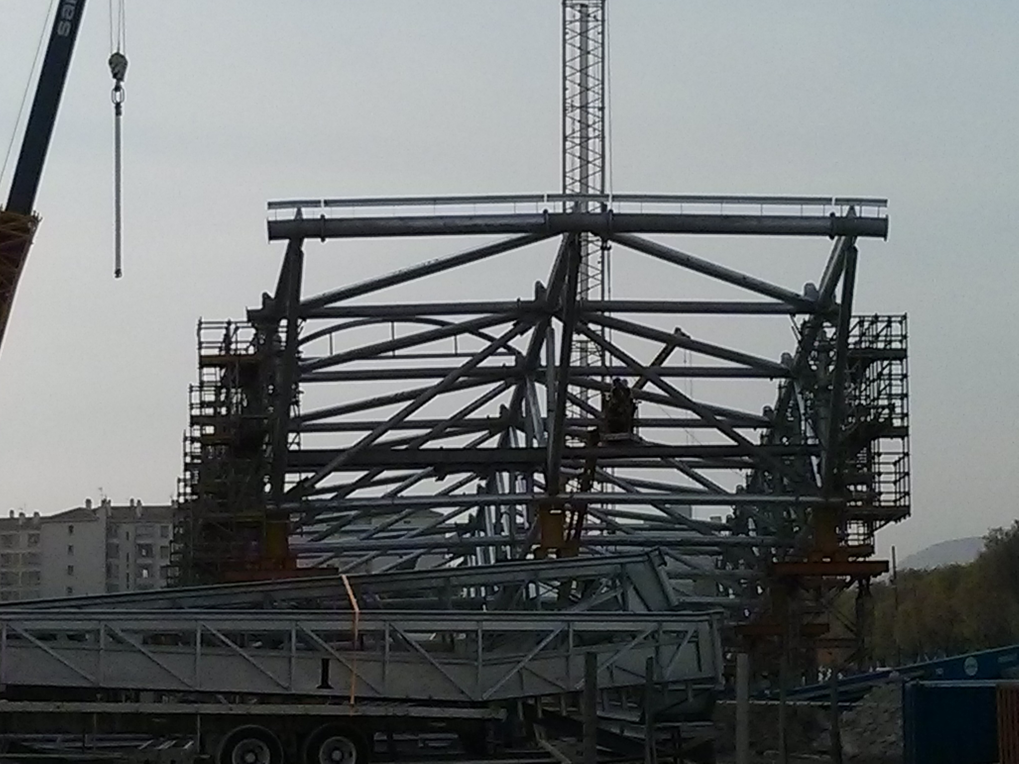 Effectivement pose du deuxième arceau en cours.waddle71 a écrit :La Sennebogen pose la dernière passerelle technique et vu la présence d'ouvriers sur les échafaudages, je pense que la reprise de la pose des arceaux est imminente