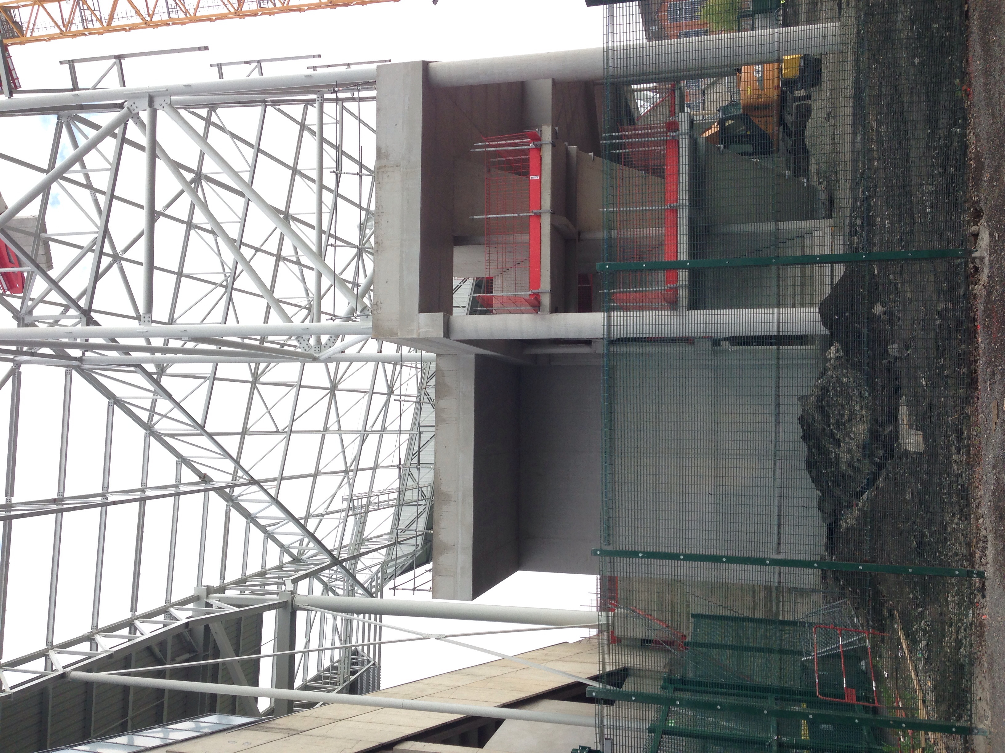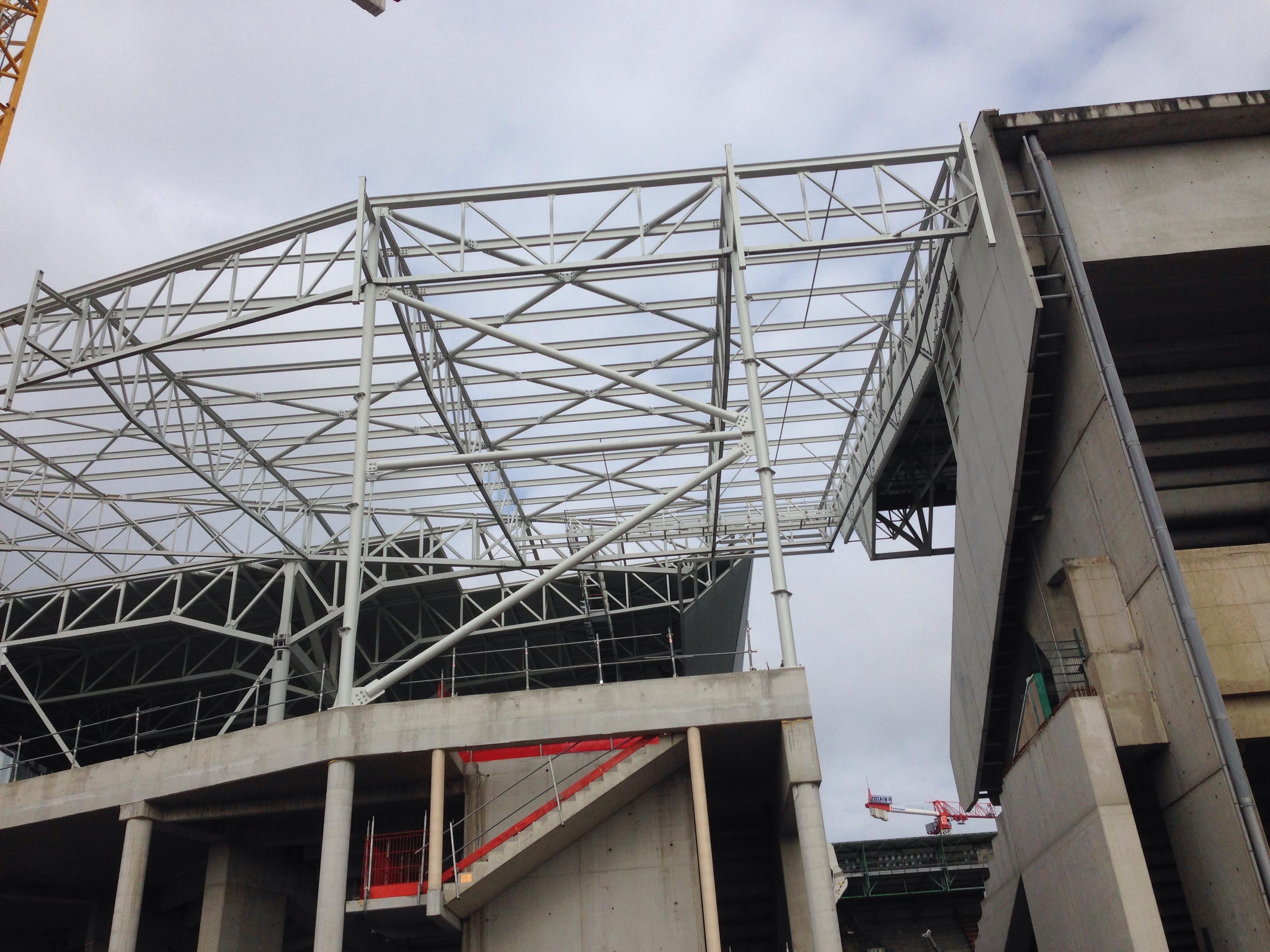 La charpente du 4e angle a l'aire d'être fini, ils ont même mis la charpente pour la jupe.