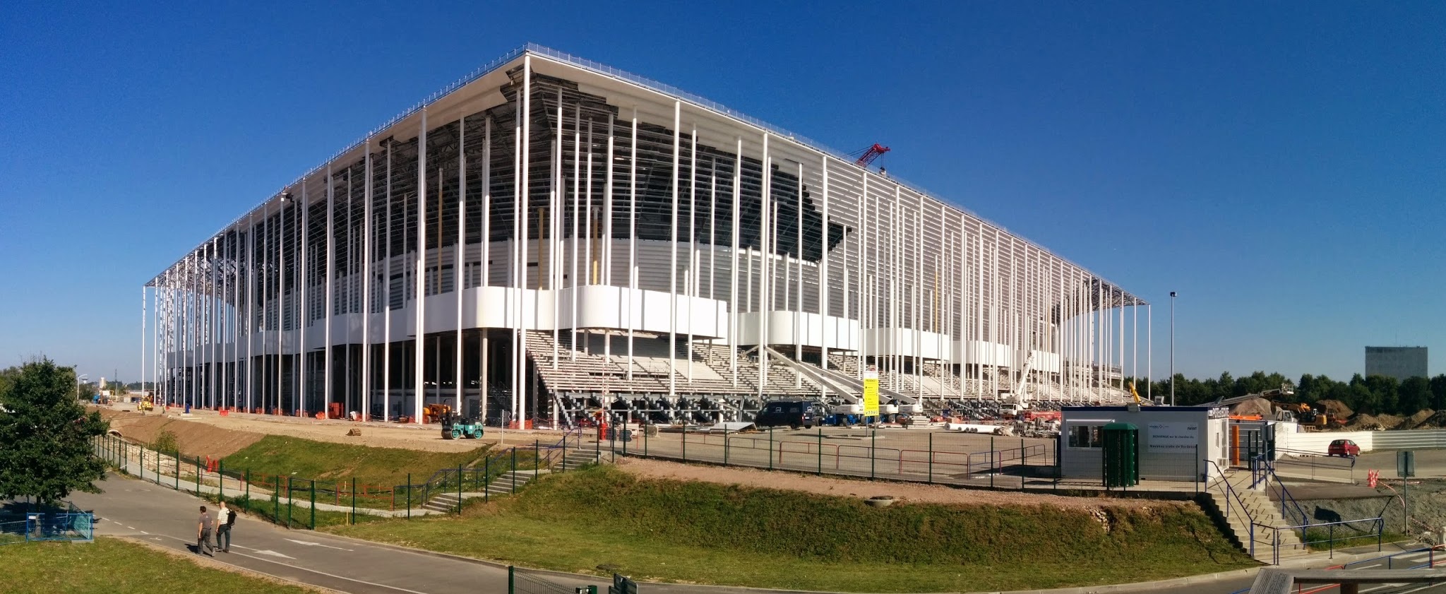 Ce stade a un geste architectural très fort et sera certainement l une des plus belles reussites des 9 stades de l' Euro!! Il sera du meme standing que la Juve Arena, qui est une des références des stades nouvelles générations de 40 / 50 000 places!!!