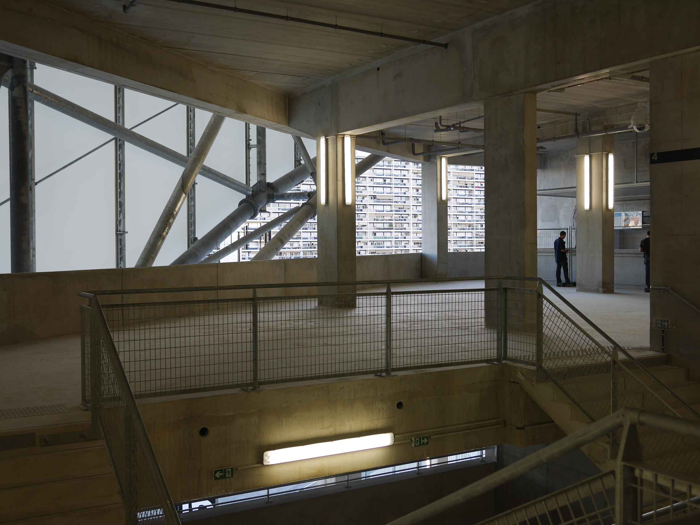 Pas mal de choses qu'on découvre enfin comme l'escalier hallucinant d'effet provisoire du haut JB, les salons intermédiaires, le parvis vu du haut JB , la vue plongeante vertigineuse de la pelouse,, la buvette, les coursives,un escalator, la grande entrée très jolie par ailleurs, mais aussi et surtout quelques détails supplémentaires bien lamentables en terme de finition et de laisser aller, des garde corps et des promontoires surdimensionnés et ridicules (MV MB 2014 est demandé au parloir)... surtout sur les dernières photos des coursives indignes à l'état brut ou plutôt dignes.... des blocs infâmes de pays de l'est en bien plus sale et délabré ...