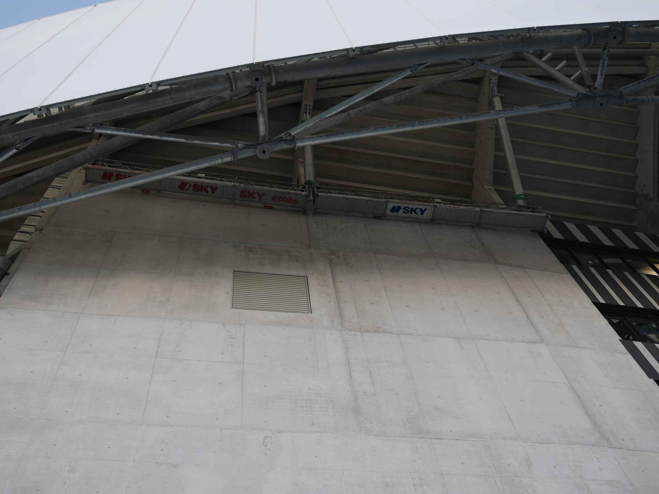 Que dire du haut de la tribune JB où l'on peut quasiment se cogner la tronche dans les tubulures encore une ènième hérésie... entre le trop haut d'un côté, et le trop bas de l'autre, paye ta malfaçon honteuse et tes erreurs incroyables de construction...
