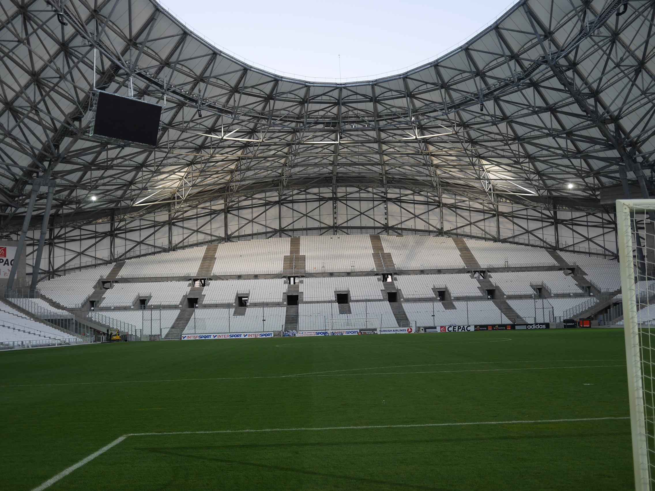 - La toiture : tribunes entièrement couvertes et belle forme de vague. Elle n’entraîne pas de sentiment d’oppression ni de lourdeur